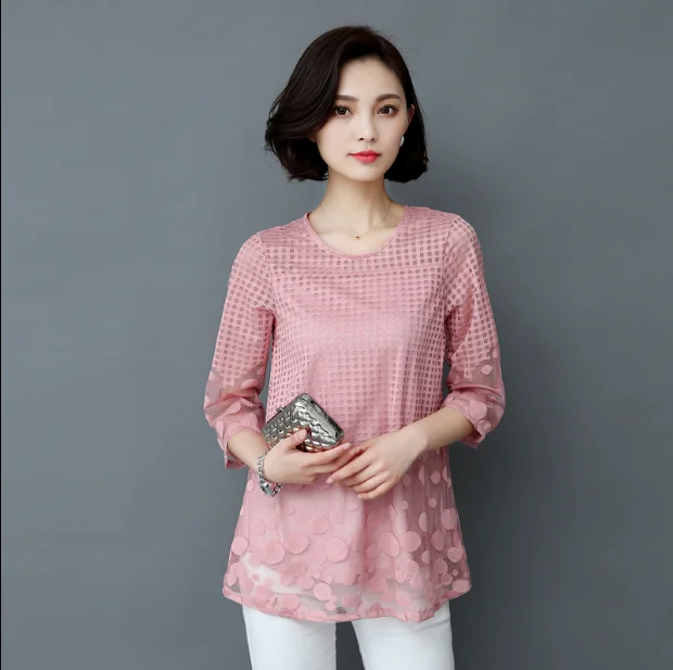 большие размеры, белые, розовые, фиолетовые кружевные блузки Женские летние блузки, шифоновые женские топы 2019, новые модные женские блузки 11E