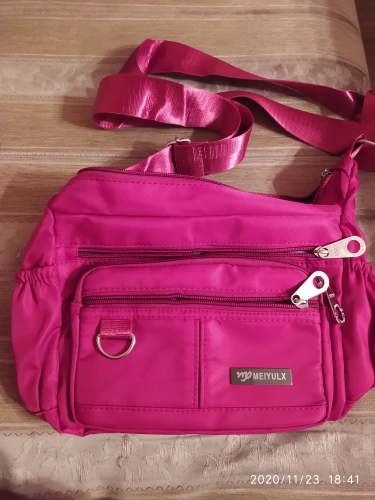 Красивая сумка, много карманов на молнии. Я в восторге от этого.