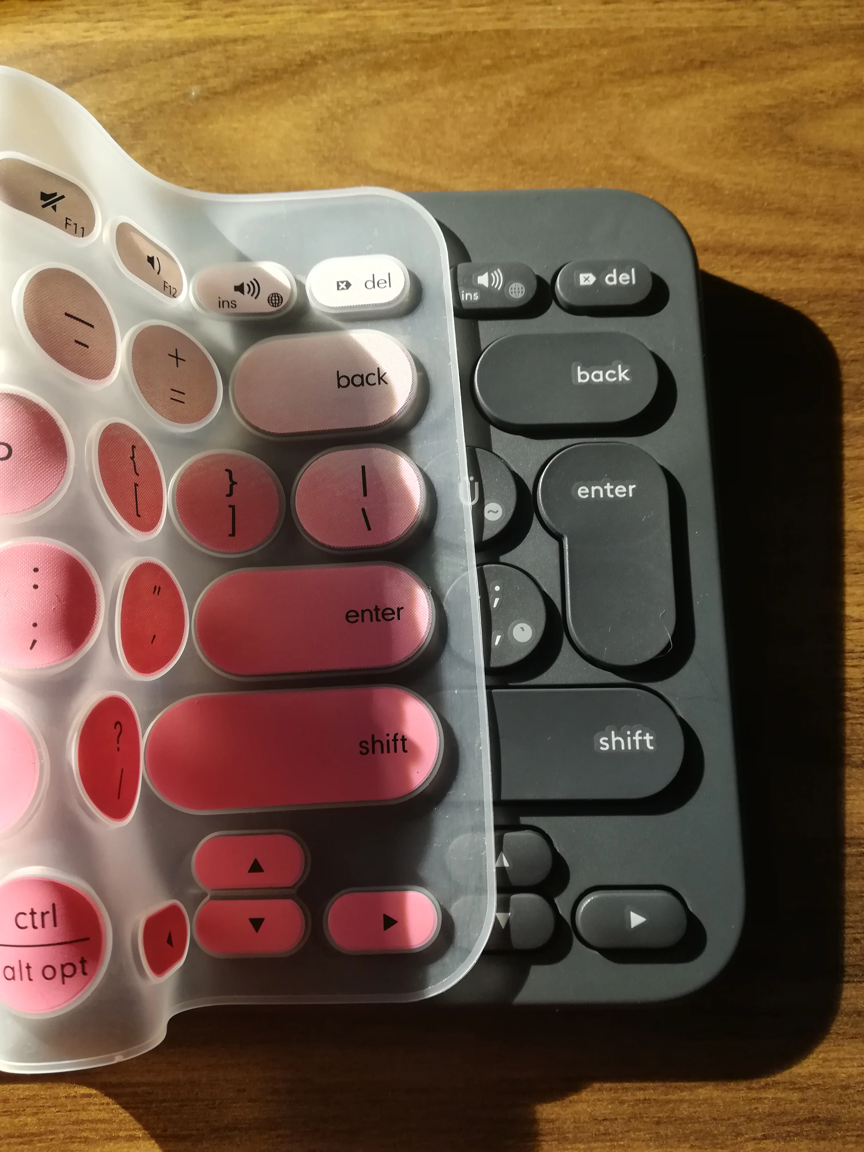 Продукт, безусловно, предназначен для другой версии клавиатуры Logitech K380: Клавиша ввода имеет форму по-разному, чем моя Турецкая версия Q. Он не подходит для моей клавиатуры идеально и, следовательно, напечатано немного неудобно. Однако это моя вина, что я не проверил это на фотографиях. Я буду держать продукт только в качестве защиты от пыли.