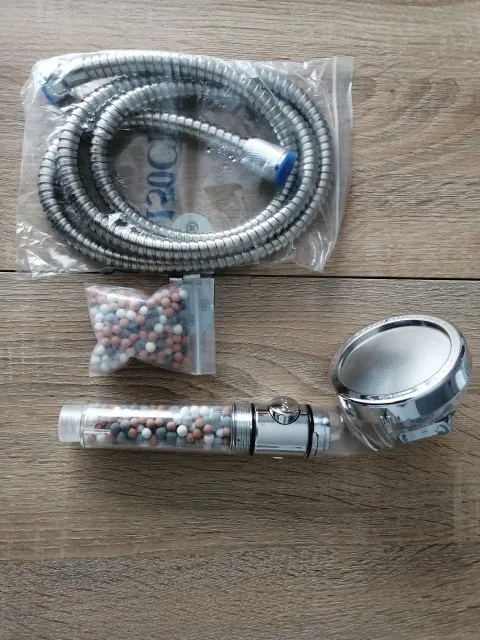 Мне очень понравилась эта модель душевой насадки,действительно напор сильный такой что аж ветер от струи))3 режима подачи воды мой самый любимый режим дождя)в душ хожу прямо с кайфом)сама насадка тяжёлая прямо ощущается вес в руке,материалы пластик и металл из которого вся сантехника изготовляется,я заказывала со сменными фильтрами шариками,посмотрим сколько прослужит,по ощущениям от фильтров которые якобы чистят примеси в воде кожа такая же как и была до этого душа,изменений при мытье я не заметила)Доставка быстрая до России за 2 с небольшим недельки уже лежала на почте,единственный момент который я до сих пор не могу понять в этой модели после того как выключаешь душ внутри головки насадки и в отсеке с фильтрами шариками остаётся всегда вода как в аквариуме и сливается только если откручивать его от шланга,может это нормально?и он становится ещё тяжелее по весу в руке ,люди напишите у кого так же,может оно так и должно быть?!к покупке однозначно рекомендую!