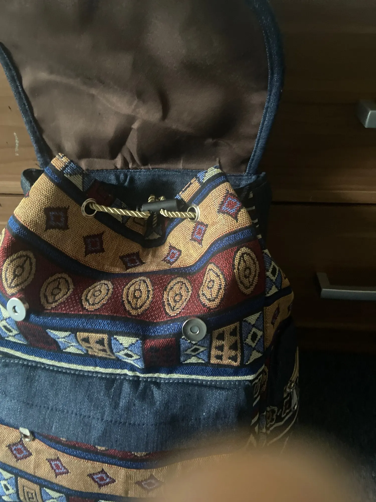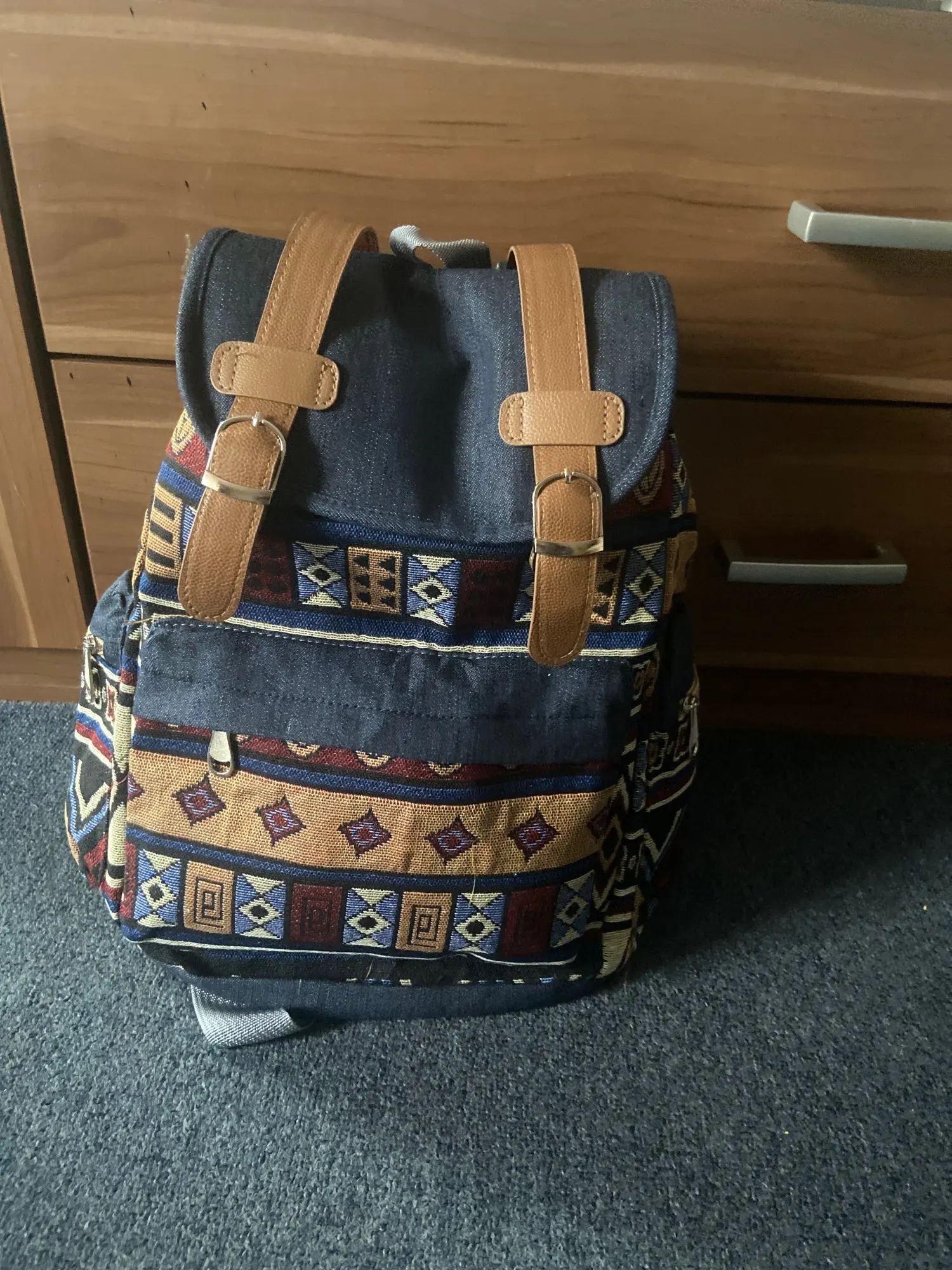 Доставка рюкзака примерно дней 25, пришёл с браком, нитки внизу рюкзака прошиты плохо расходятся, внизу в углу дырка, качеством пошива недовольна. Рюкзак большой, вместительный, внутри один маленький кармашек на молнии, спереди карман на молнии, и по бокам рюкзака маленькие кармашки на молнии. Внутри рюкзака лежит плетенная веревочка, она затягивает рюкзак, закрывается на магнитные кнопки спереди.