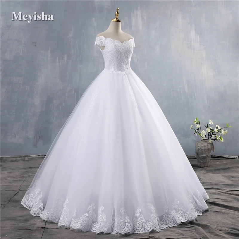 Новинка 2019, Элегантное свадебное платье ZJ9143 белого цвета слоновой кости с открытыми плечами для невесты, кружевное платье с кружевной каймой