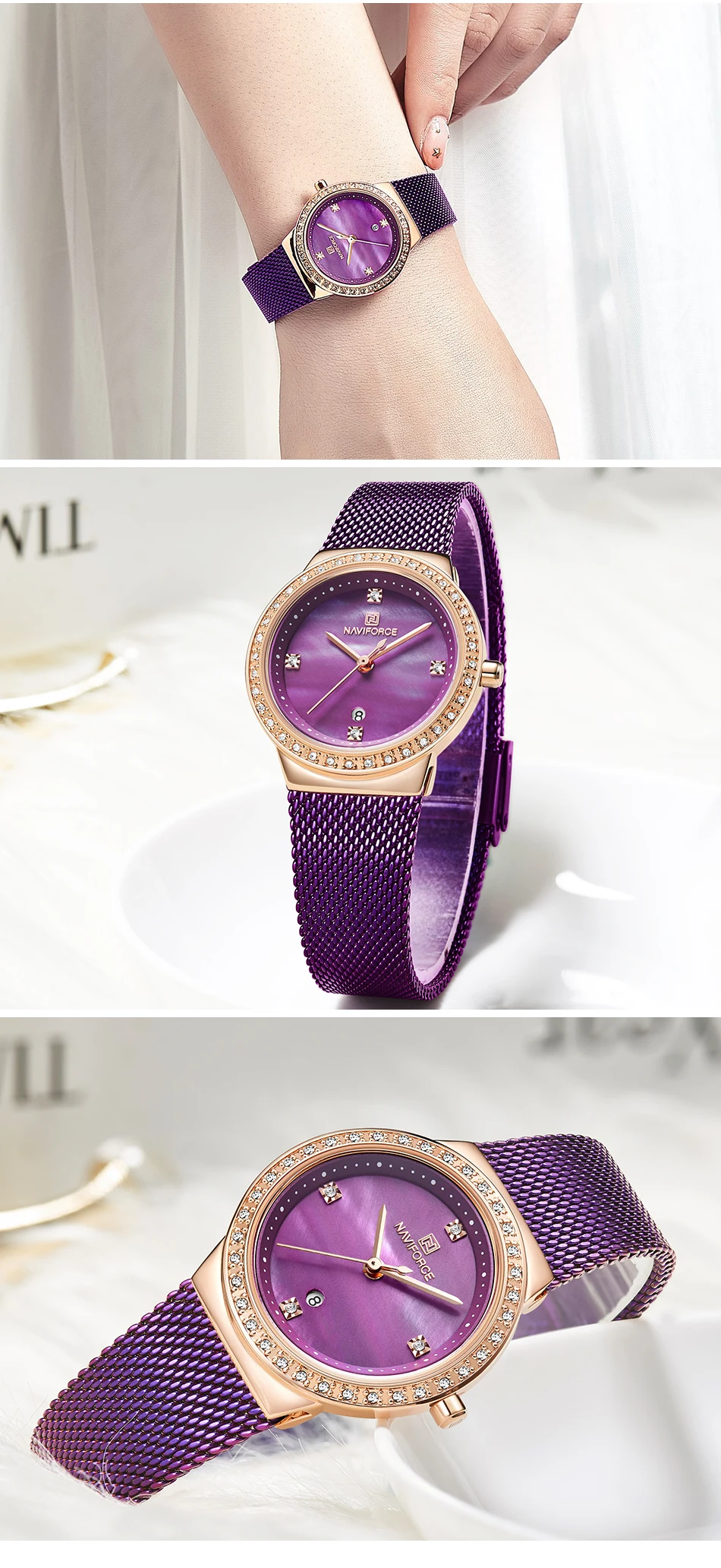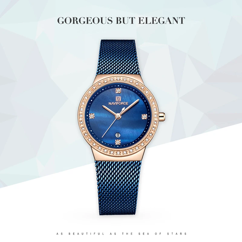 NAVIFORCE женские кварцевые часы, женские модные роскошные розовые золотые синие часы, женские простые наручные часы из нержавеющей стали с сетчатым ремешком