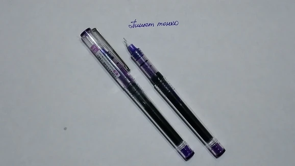 Упаковано нормально. Сроки в норме. Рассчитывала что ручка будет тоньше немного. Но она итак тонкая. Как гелька. Колпачок плотно сидит. Стержни менять нельзя. Там просто как отсек с чернилами. Пишет хорошо. Покупала за 42,50руб