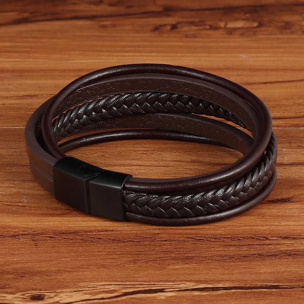 Браслет XQNI из натуральной кожи мужской, модное многослойное Ювелирное Украшение черного цвета с шармами, хороший подарок для мальчика
