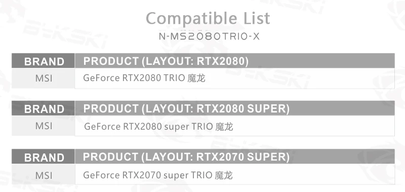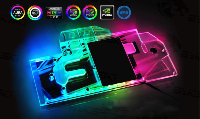 Водяной блок Bykski для MSI GeForce RTX 2080 Gaming X Trio 8 GBполное покрытие, медная фотография3PIN 5V RGB 4PIN 12V RGB