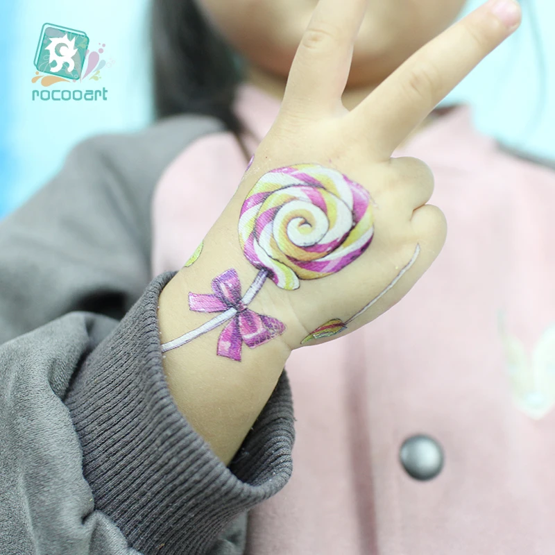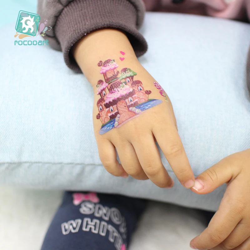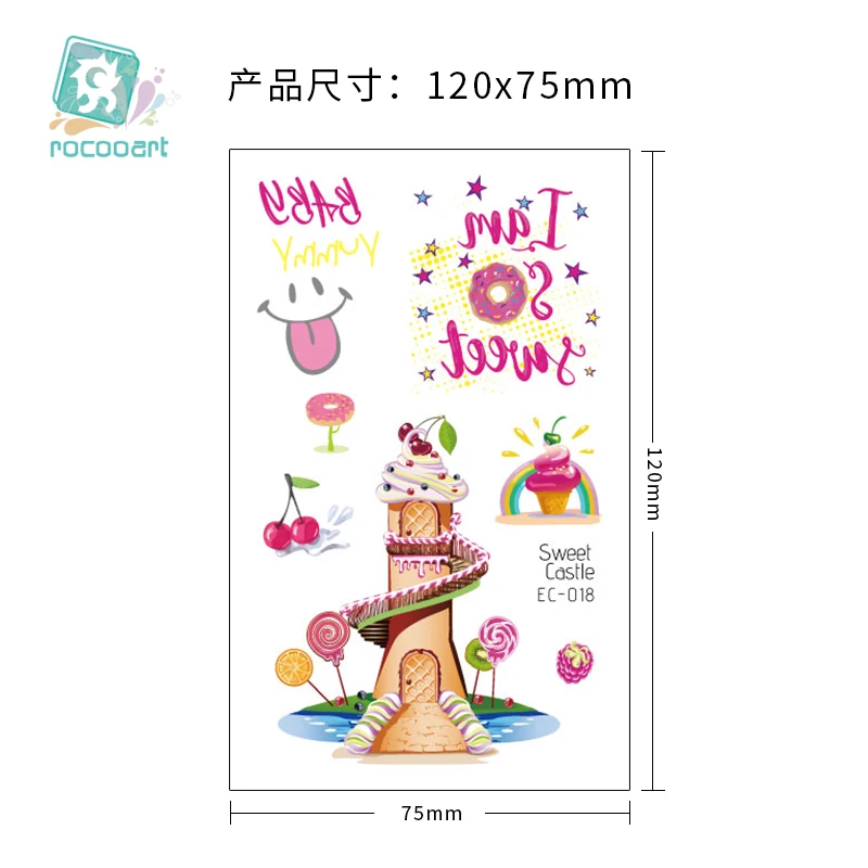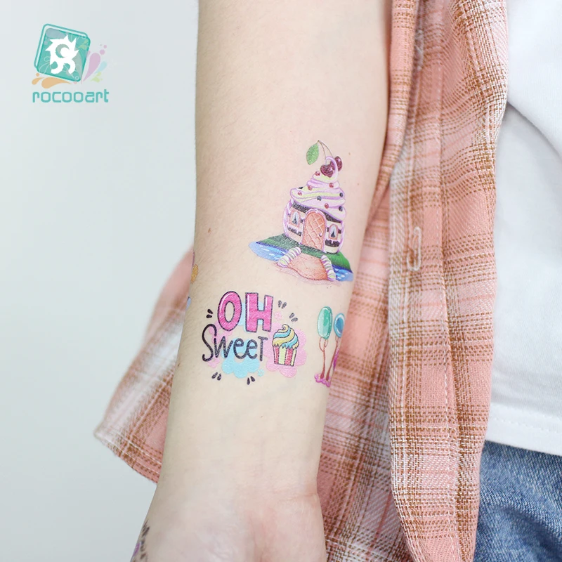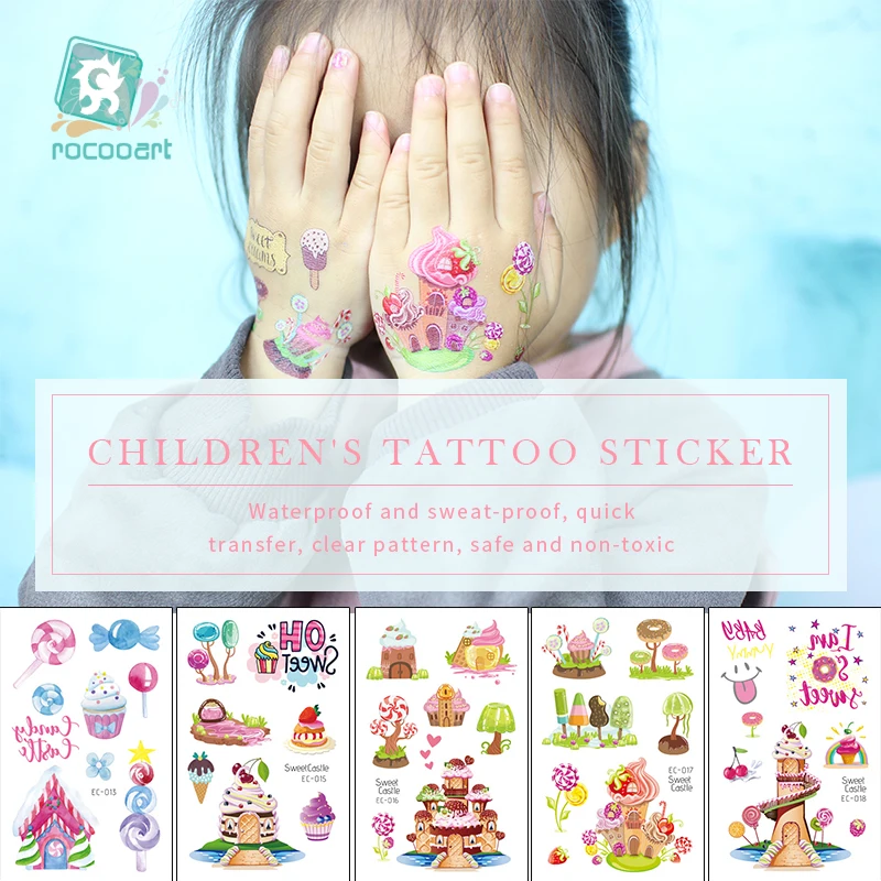 Rocooart мультфильм конфеты татуировки для детей замок поддельные татуировки Icecream временный стикер татуировки дети подарок на день рождения девушки Вечеринка