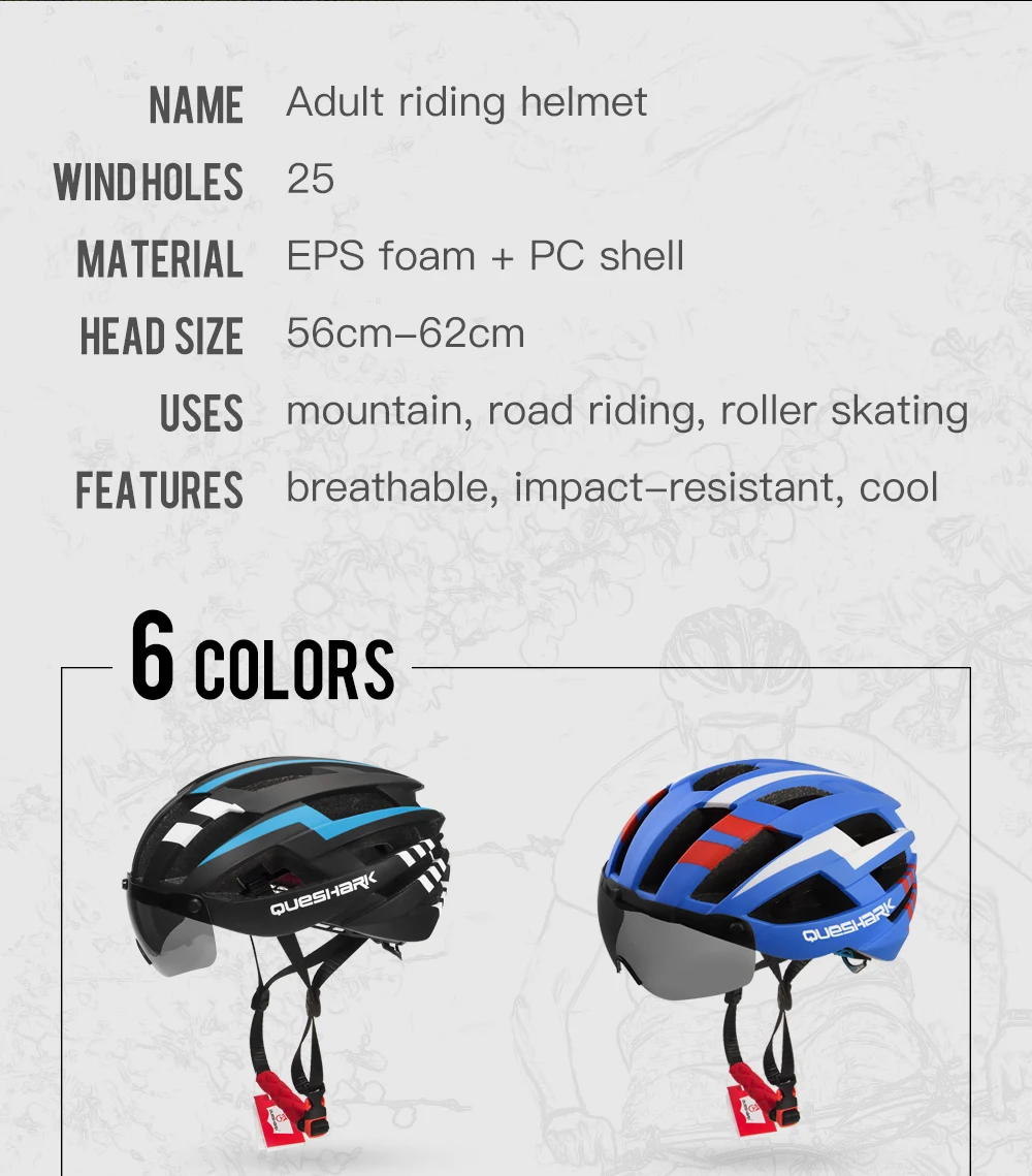 Вообще не понятно под какую голову сделан этот шлем. Все друзья мерили не кому не подошёл. Фиксация на голове очень неудобная носить с вело кепкой не реально. Глаза от пыли защищены плохо. Продовец товар отправил быстро претензий нет.