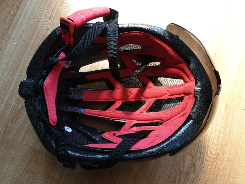 В целом хороший шлем: легкий, удобно сидит, ремни настраиваются. Но очки примагничиваются крайне слабо и при легком давлении слетают.
