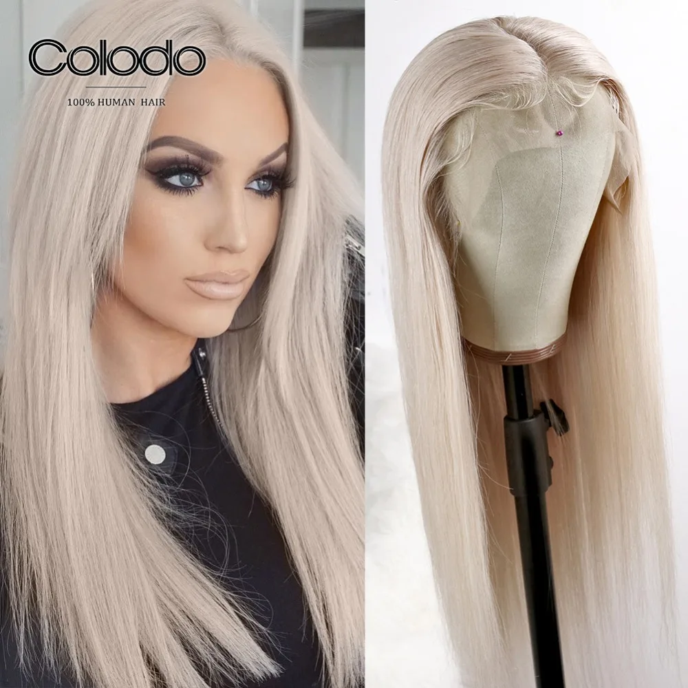 COLODO предварительно выщипанные пепельные светлые человеческие волосы парики Remy волосы прямые кружевные передние парики бесклеевые прозрачные кружевные парики для женщин