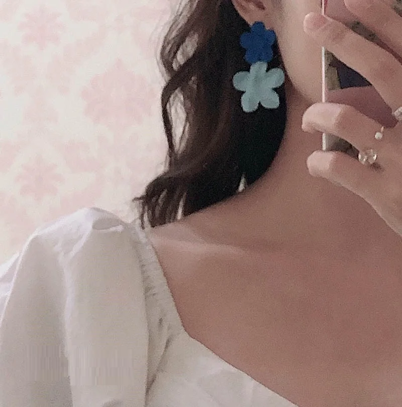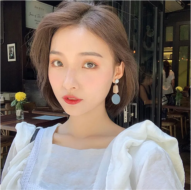 Женские акриловые сережки-подвески AOMU, летние синие серьги нестандартной формы с вырезами, пляжные ювелирные украшения в корейском стиле, круглые и квадратные сережки