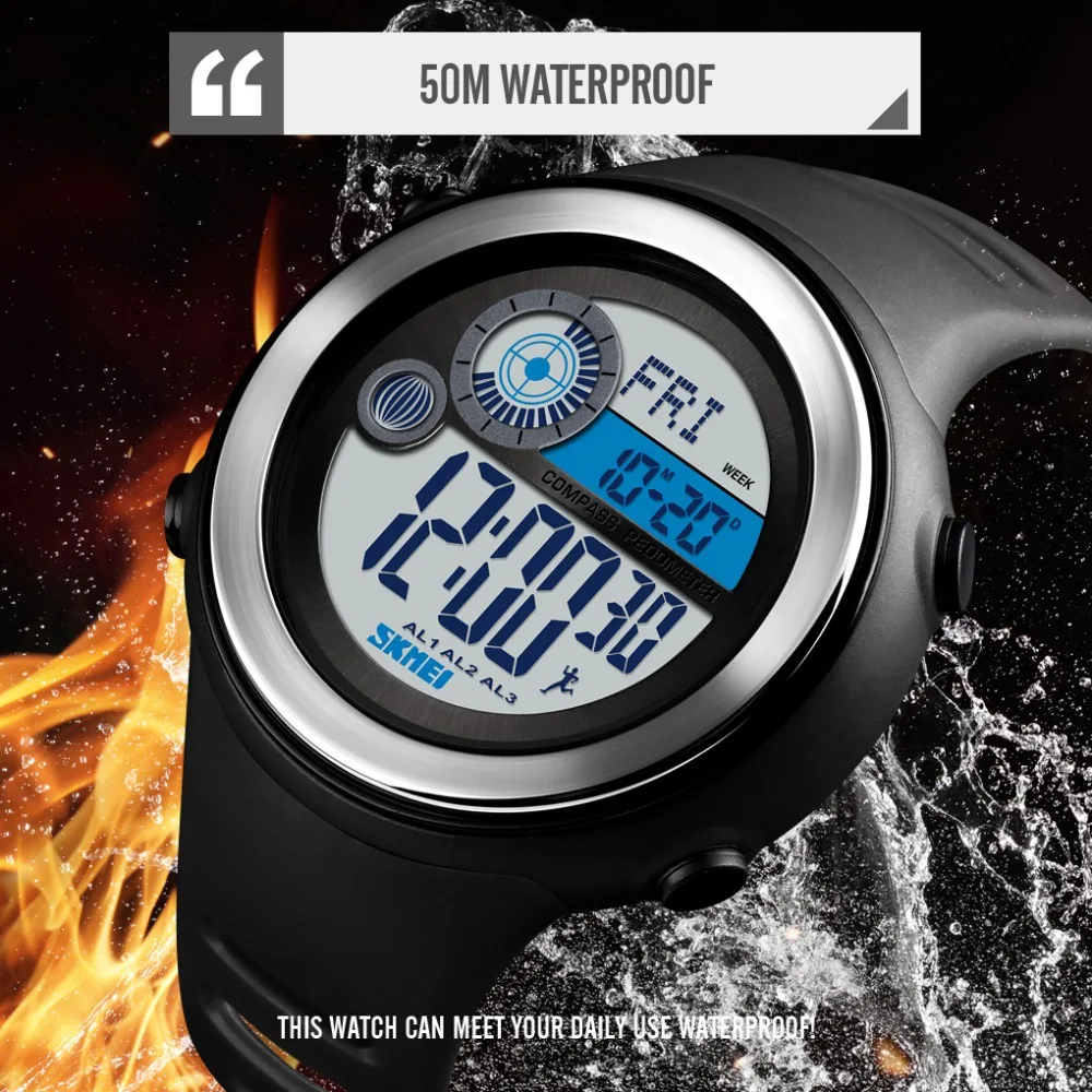 SKMEI уличные спортивные часы с компасом, мужские модные цифровые часы с калориями, Водонепроницаемые многофункциональные мужские наручные часы, Relogio