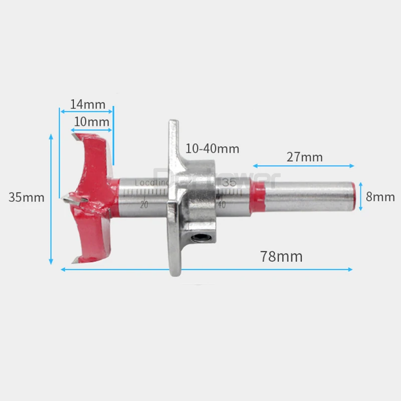 Использование: используется для перфорации деревообрабатывающих изделий, установки сферических дверных замков, замков ящика, жестких пластмассовых изделий и т. д. он специально используется для открытия и установки петель деревянных досок.