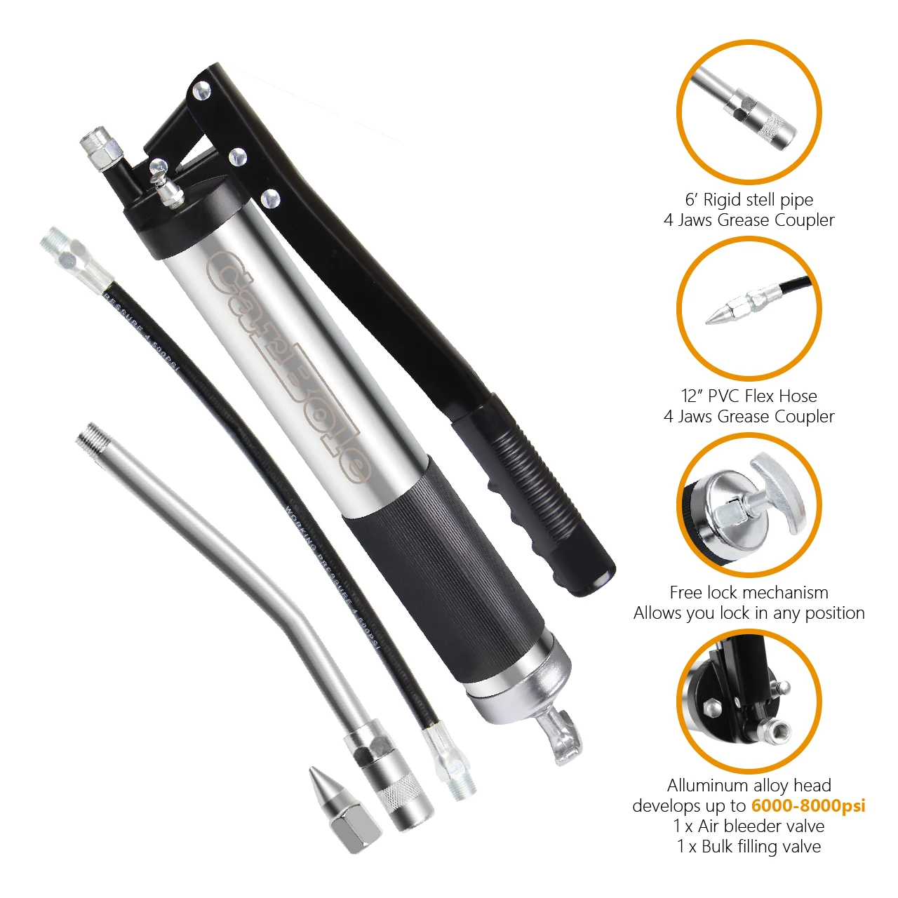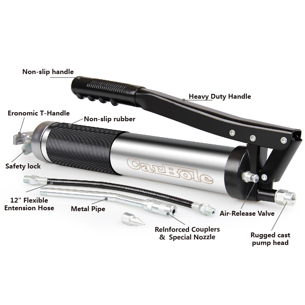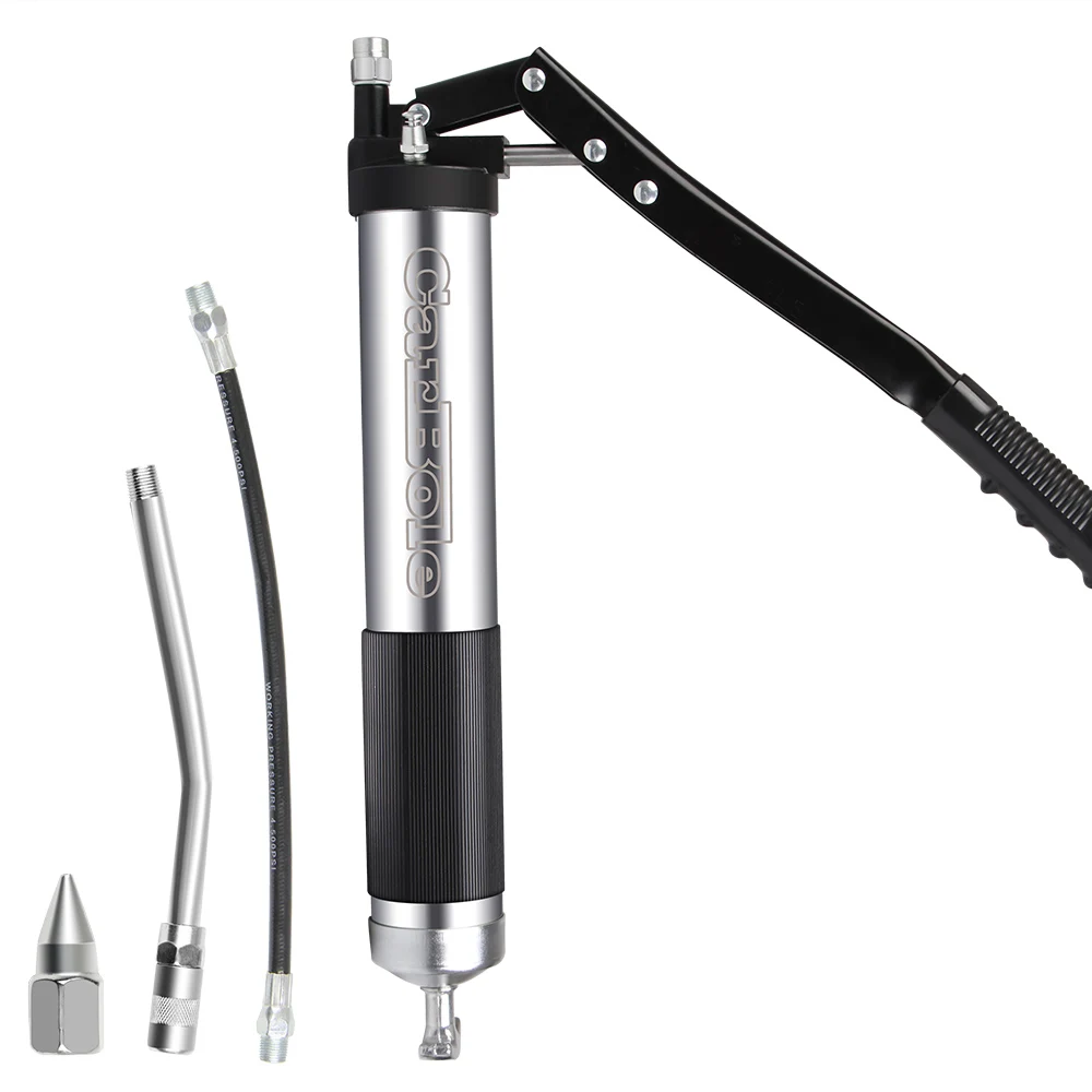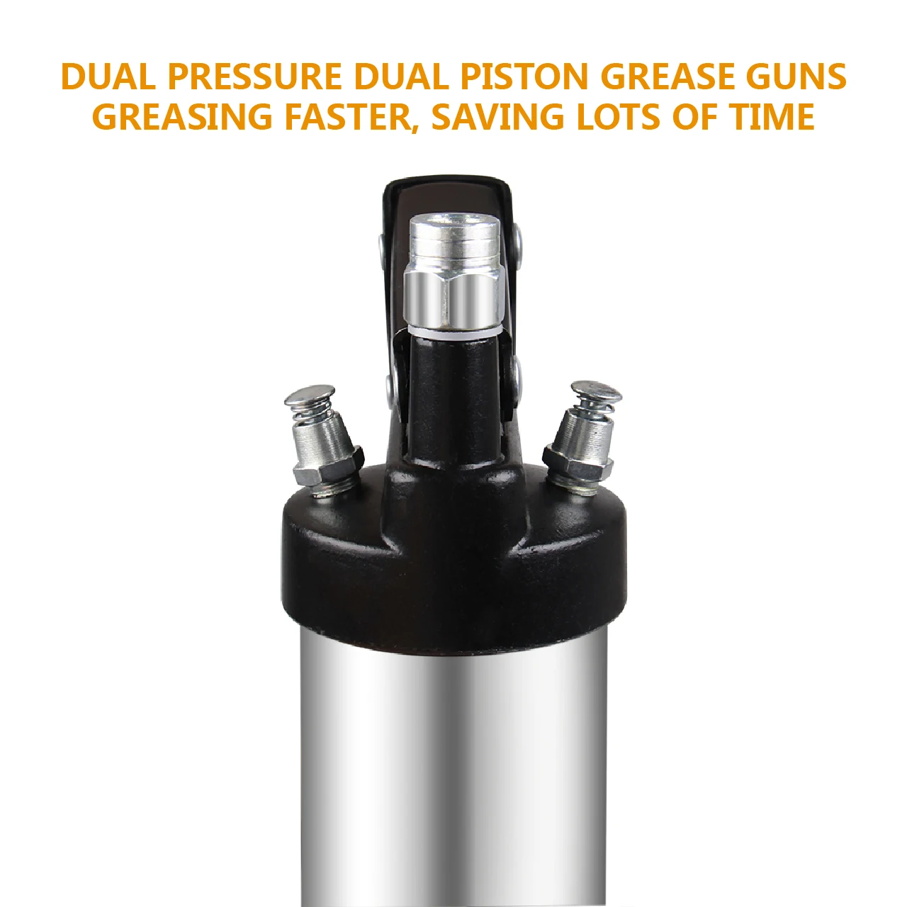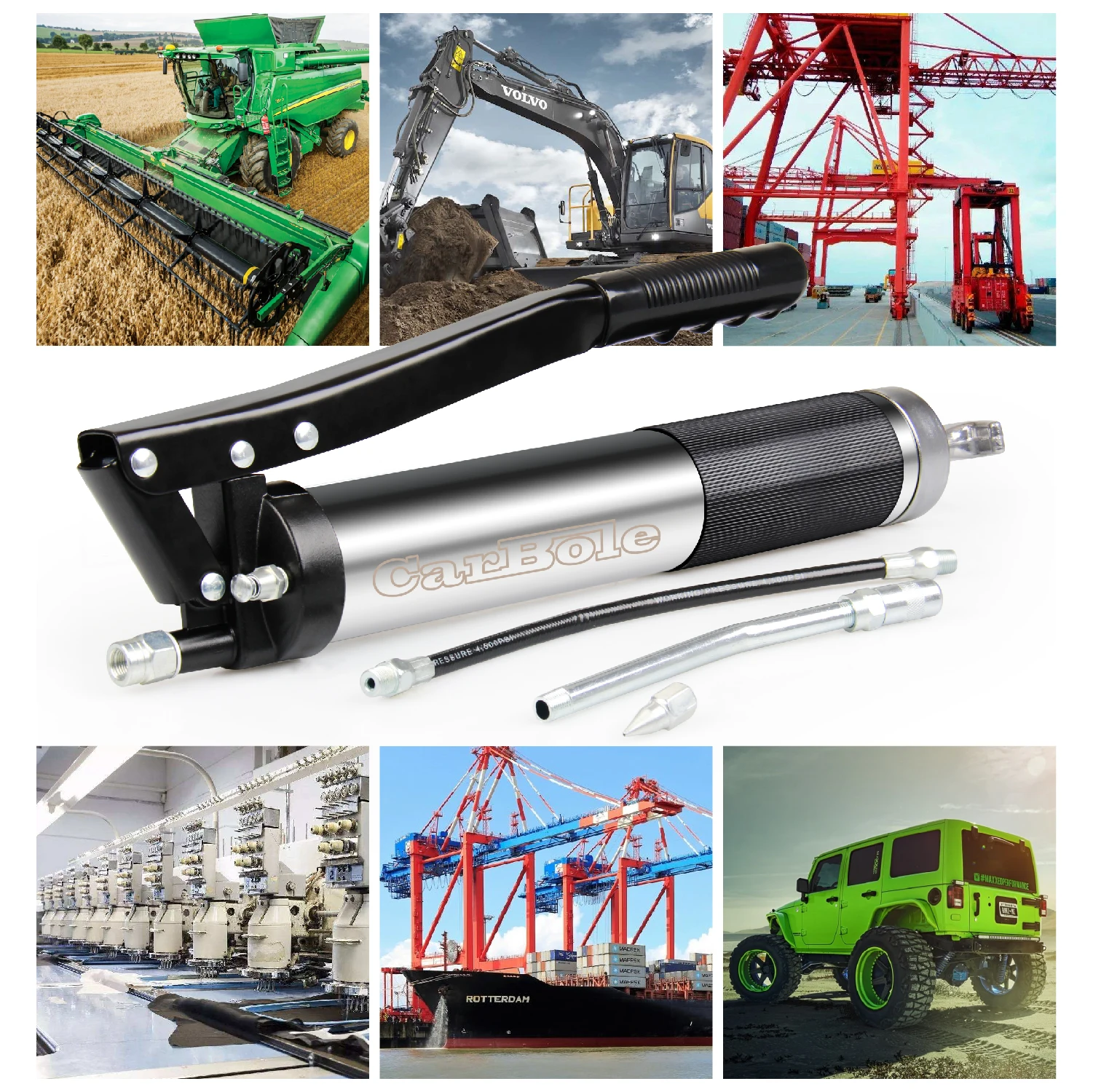 Преимущества продукта: двухбар смазочного пистолета, экономия труда, быстрый выход масла, выход масла в два раза больше, чем горизонтальный бар смазочного пистолета.