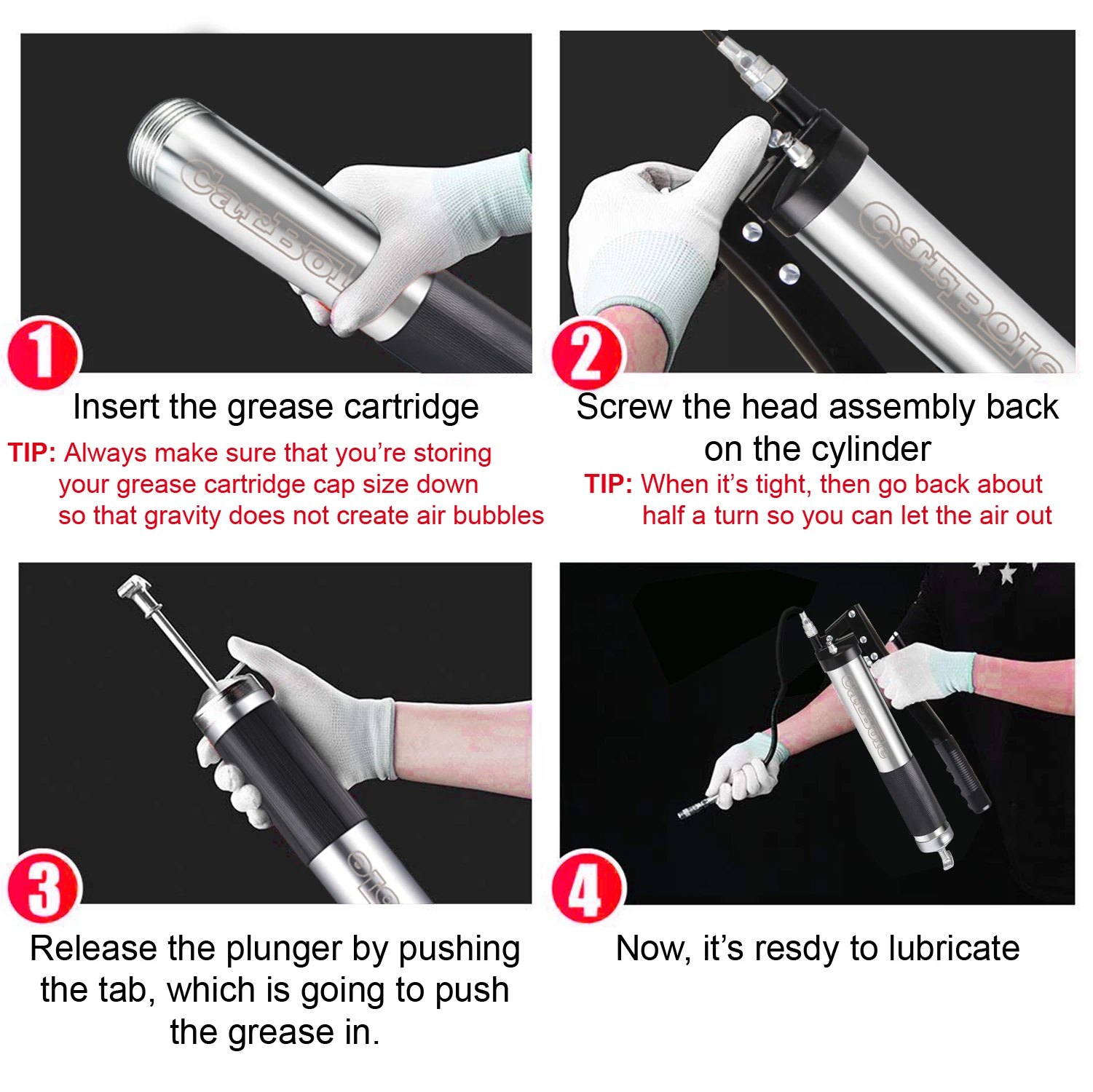 5. Вставьте тяжелую смазочную насадку в смазочный пистолет, чтобы уменьшить утечку смазочного пистолета.