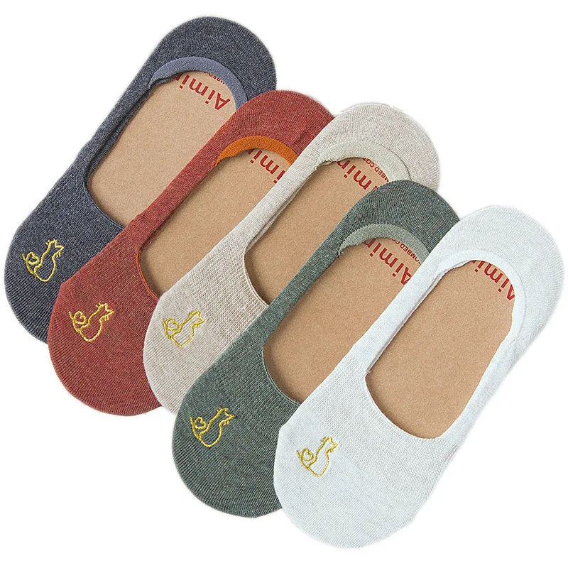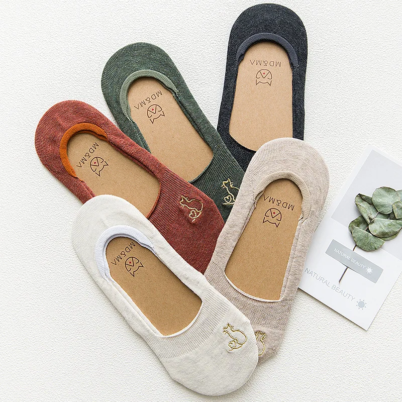 Носки-невидимки Хлопковые женские, с мультяшным котом, Симпатичные лоферы
