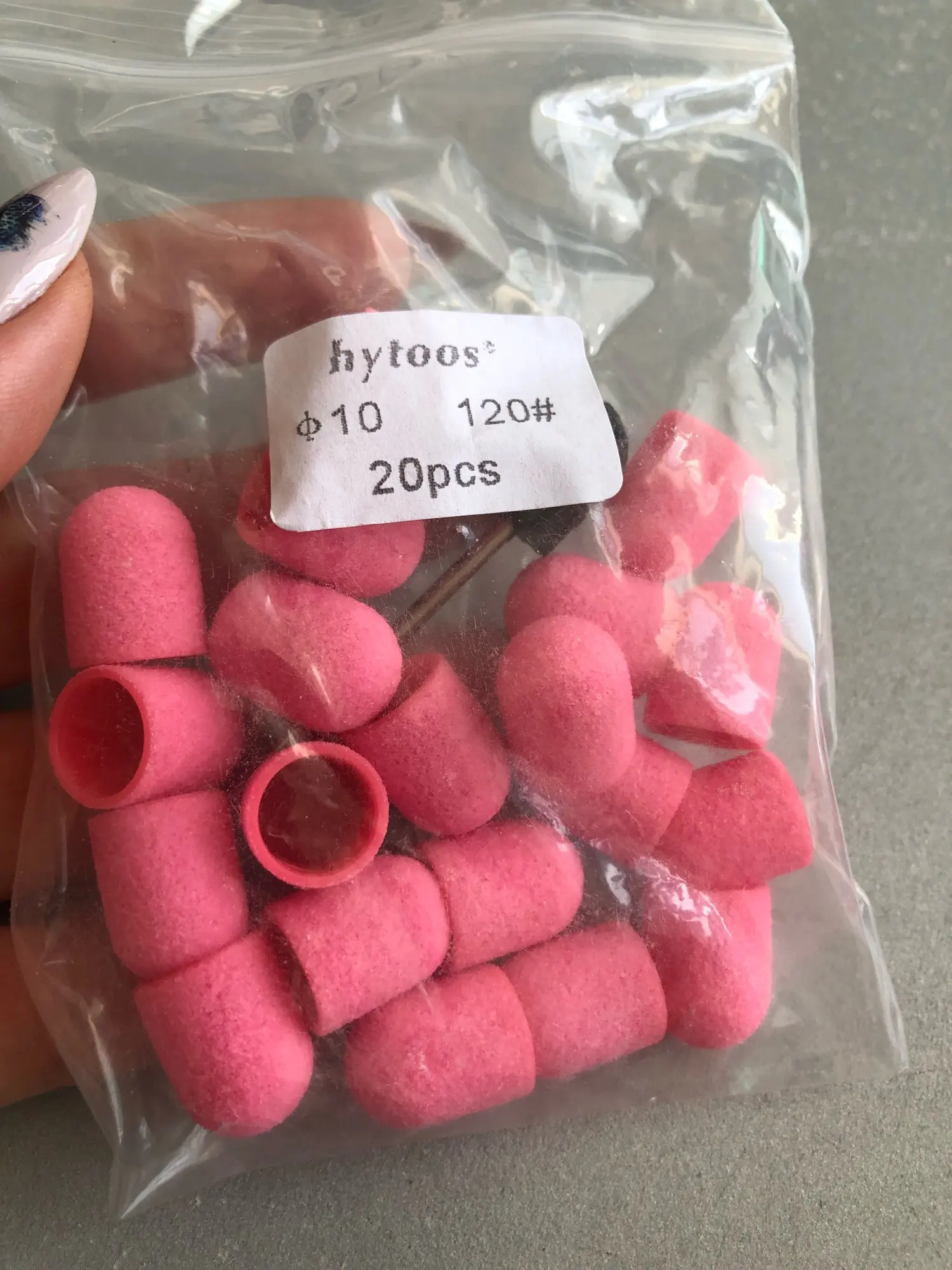 Колпачки шлифовальные розовые с резиновой рукояткой, 10 х15 мм, 20 шт.