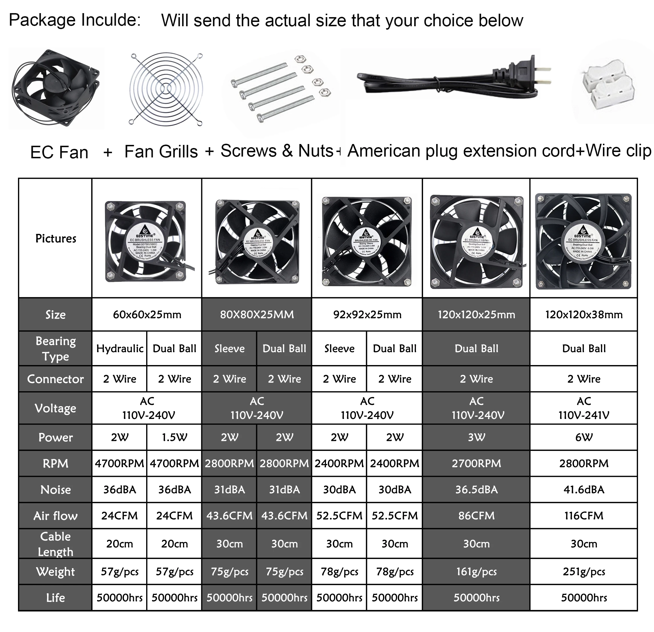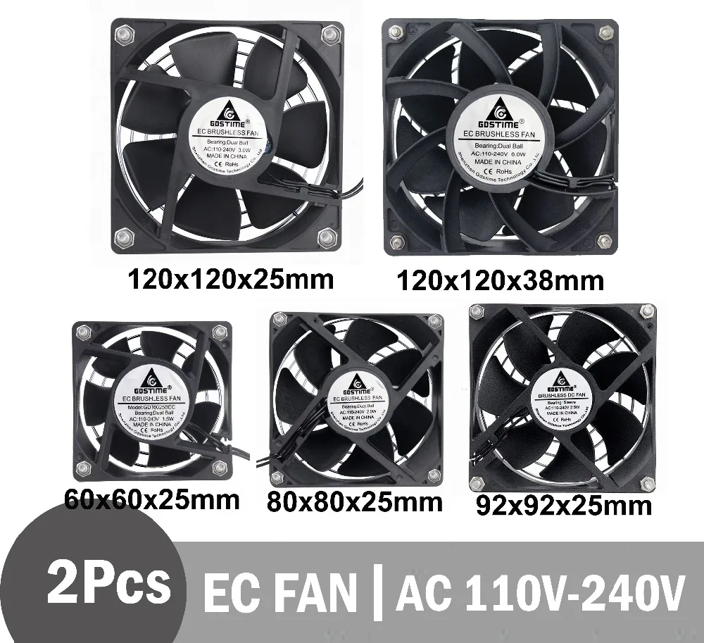 Осевой вентилятор Gdstime EC для ПК, 2 шт., безщеточный вентилятор 60 мм 80 мм 90 мм 120 мм, охлаждающий вентилятор для ПК, чехол для компьютера, 110 В, 115 В, 120 В, 220 В, 230 В, 240 В