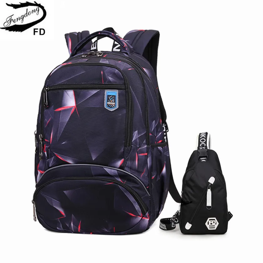 Комплект из рюкзака и пенала Fengdong, большой спортивный водонепроницаемый комплект из рюкзака, сумки и пенала для мальчиков, школьные ранцы для мальчиков