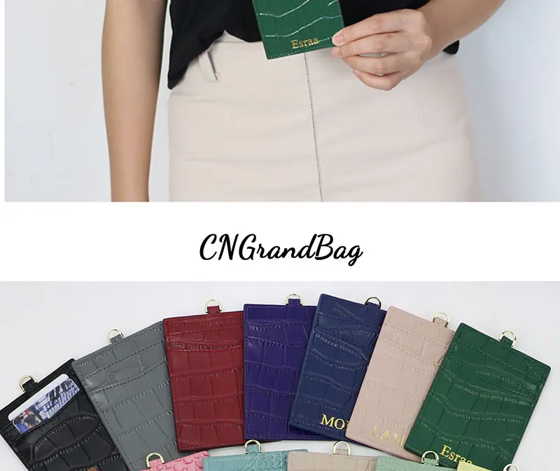 Новинка, рельефный держатель для карт из крокодиловой кожи для мужчин и женщин, держатель для ID-карт, кожаные монограммные буквы