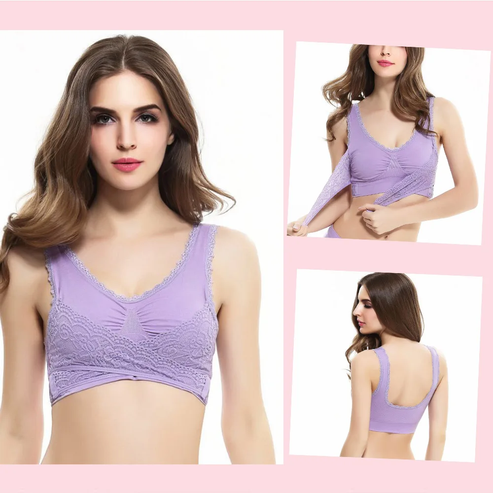 Женское нижнее белье, однотонный кружевной бюстгальтер с перекрестной боковой пряжкой без ободков, Спортивное нижнее белье, новинка, 4XL