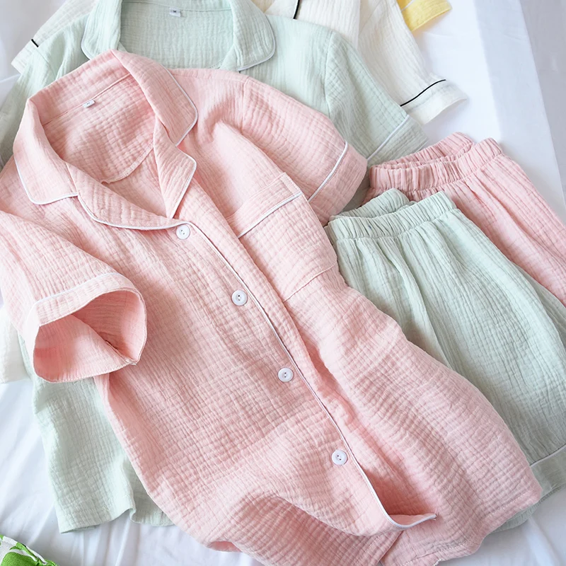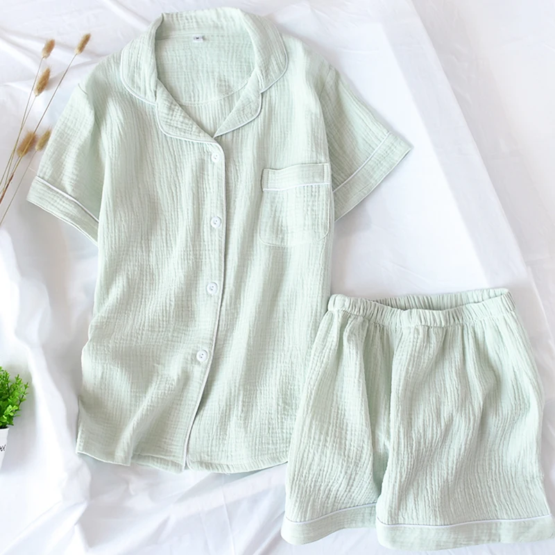 Пижама женская, из хлопка и крепа, с коротким рукавом