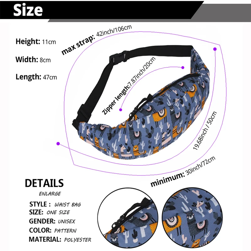 Jom Tokoy Новая красочная поясная сумка для мужчин, забавные сумки, стильная поясная сумка, Альпака для женщин и мужчин, поясная сумка для путешествий, женская сумка, yab953