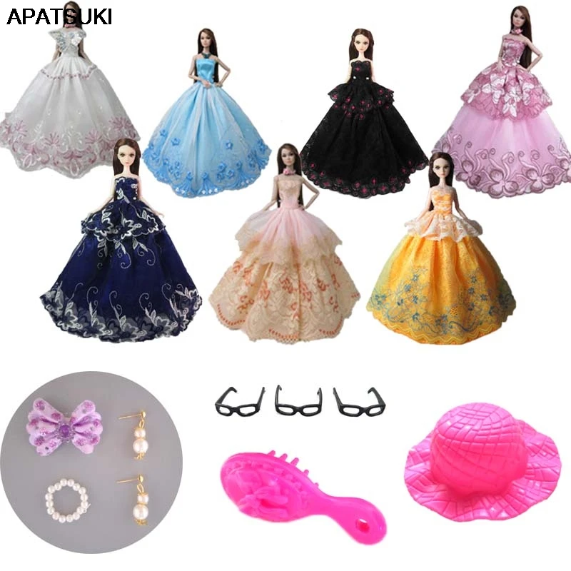 13 шт.лот кукла 16 аксессуары для Барби Кукла = 5 шт. случайный большой свадебное платье 3 шт. очки серьги "Гребень" ожерелье для куклы Барби