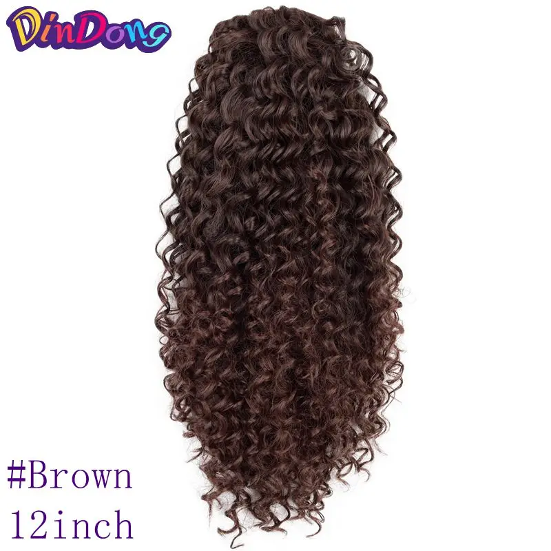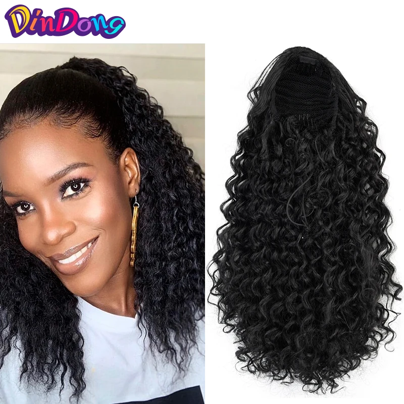 DinDong 24 ''синтетический зажим в деформации хвост наращивание волос Короткие афро кудрявые шнурки пони хвост афро американские волосы пучки