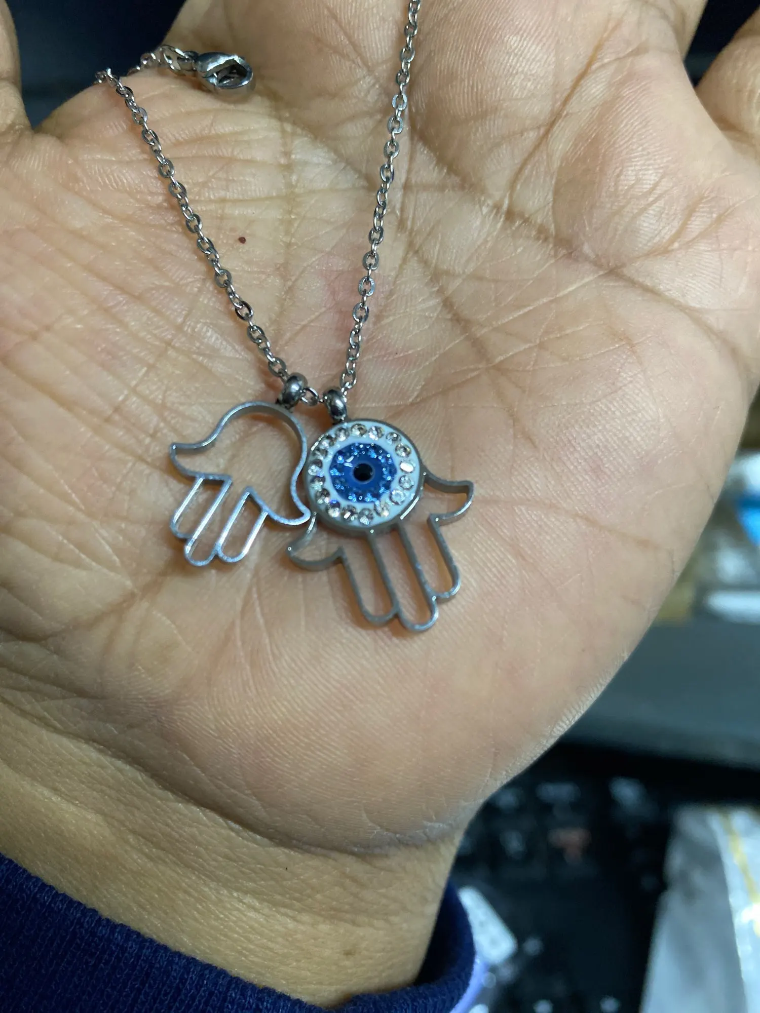 Ожерелье-чокер LUXUSTEEL, подвеска с амулетом Хамса, с фианитами, 2020