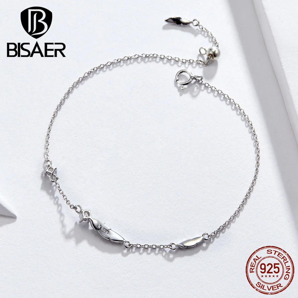 Женский винтажный браслет-цепочка BISAER, серебро 925 пробы с перьями, застежка-лобстер, ювелирное изделие из серебра ECB133