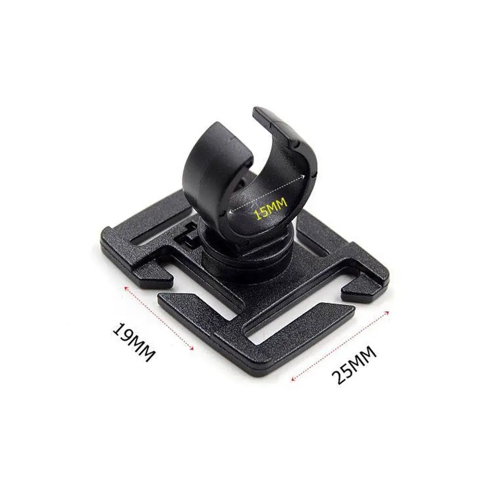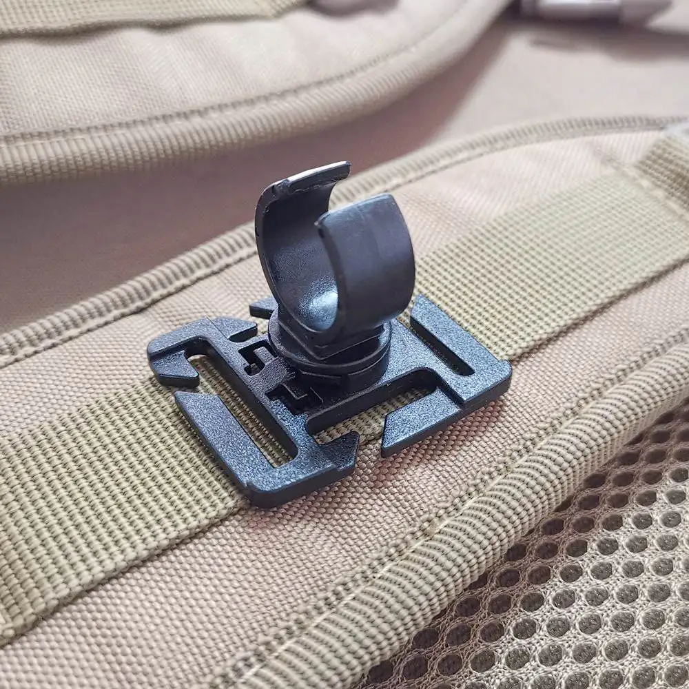 Зажим находится в центре света, то есть внутренний диаметр зажима слишком мал для маленького фонарика. Я думаю, что это стабильно, но повернуть вспышку, когда она уже установлена и когда вы носите свой рюкзак, невозможно.