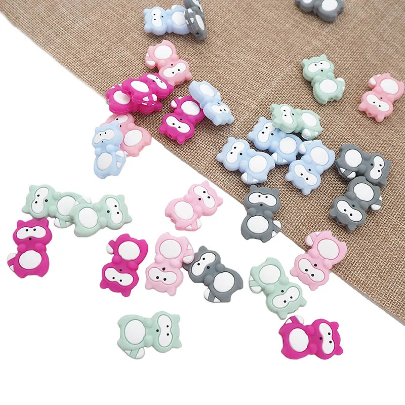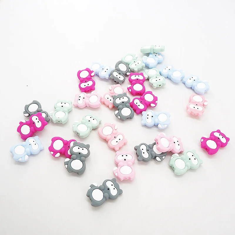 Бусины Chenkai из силикона, без бисфенола А, в виде енота, игрушка для прорезывающихся зубов с героями мультфильмов бусины для самостоятельного изготовления жевательных сосок, цепочек, аксессуары, 10 шт.