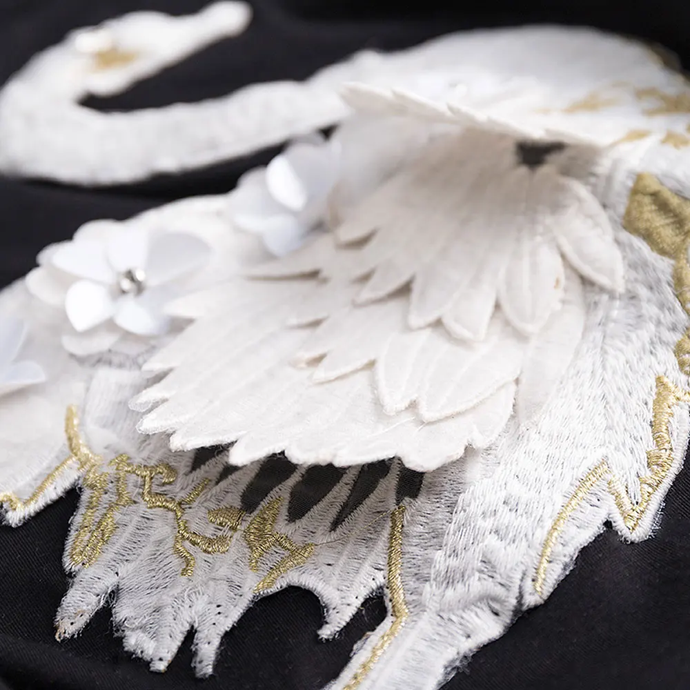 Черные футболки с длинным рукавом с объемным рисунком лебедя и бусинами