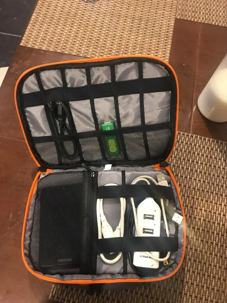 Как описано, очень хорошо сохраняет кабели и аксессуары хорошо организованными.