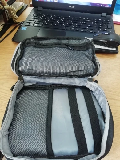 Хорошая Упаковка и доставка (около 2 недель в Бельгия). Кажется, хорошее качество, может поместиться много вещей там. Есть две молнии в большом кармане, удобно для закрытия с обеих сторон. Есть различные размеры карманов. Я доволен!