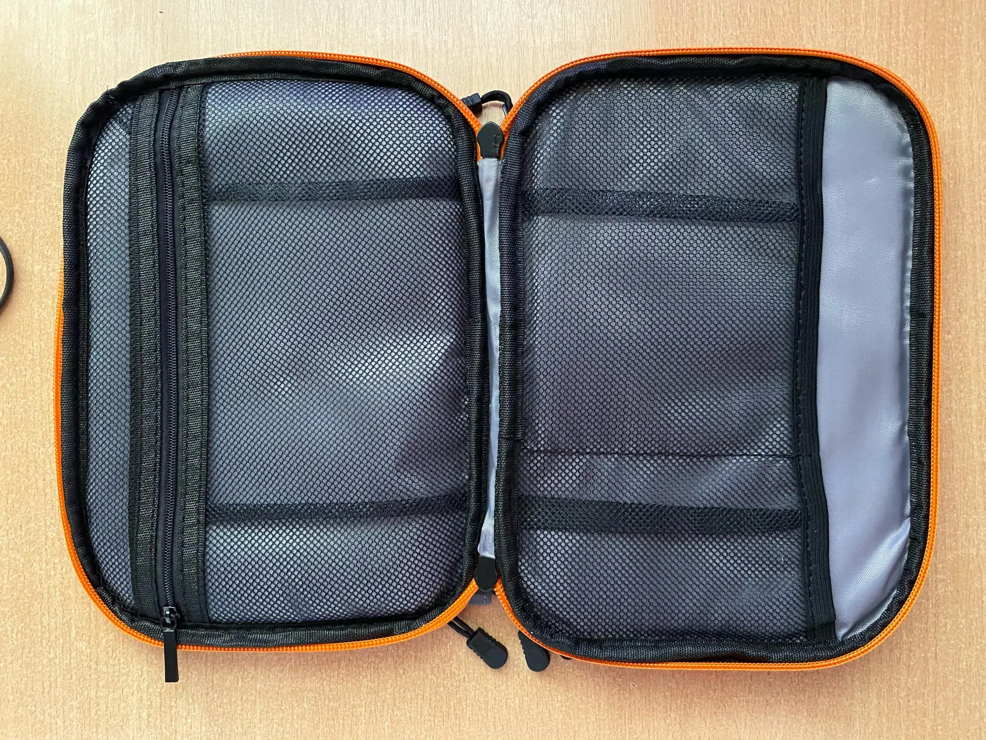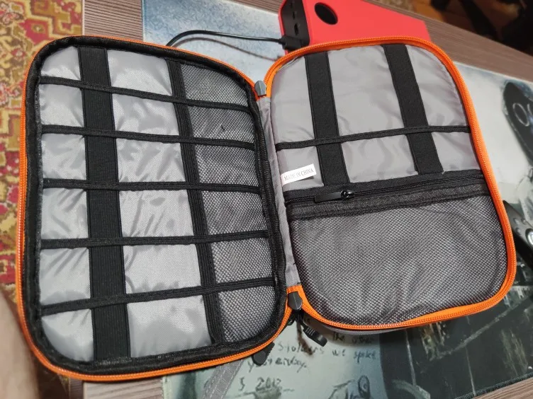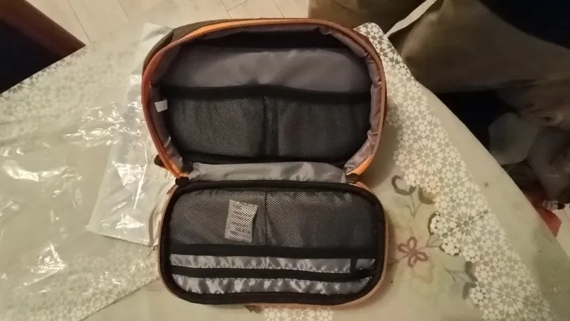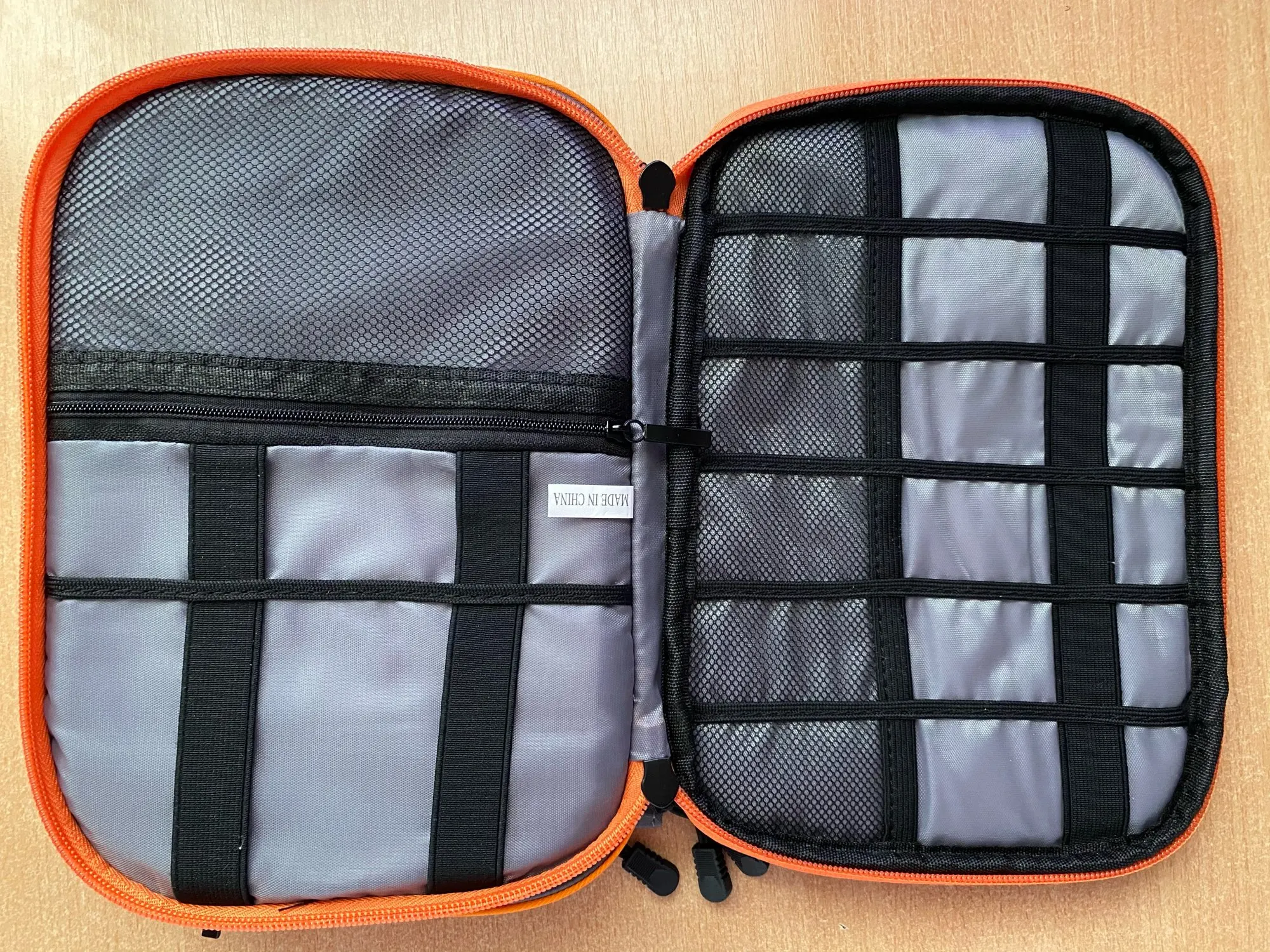 Чехол в соответствии с описанием. Он имеет карманы с обеих сторон и хорошее внутреннее пространство, хотя, если немного ограничено. Он функциональный и подходит для достаточно кабелей и гаджетов