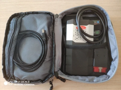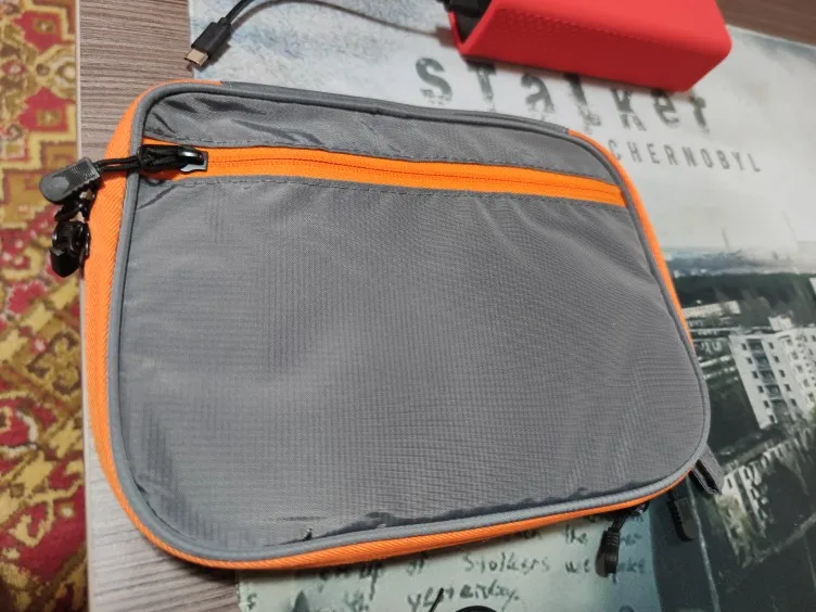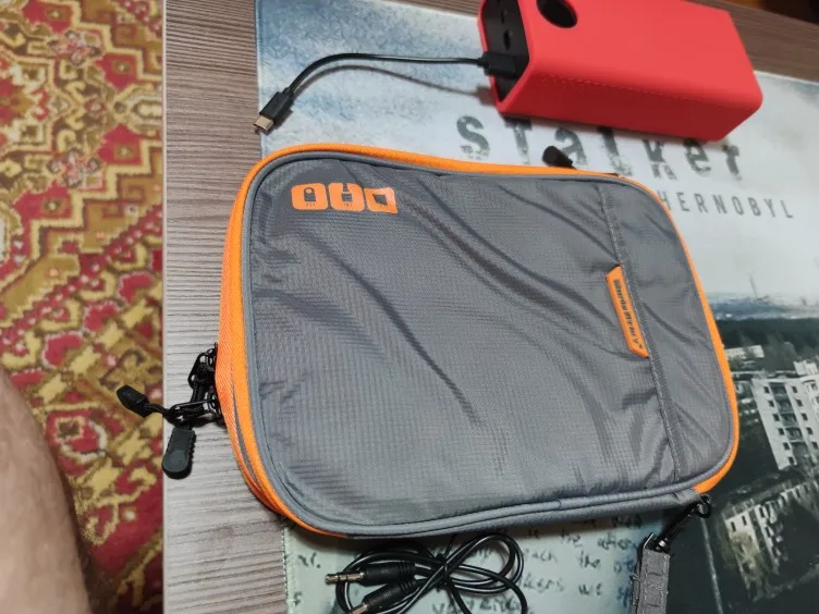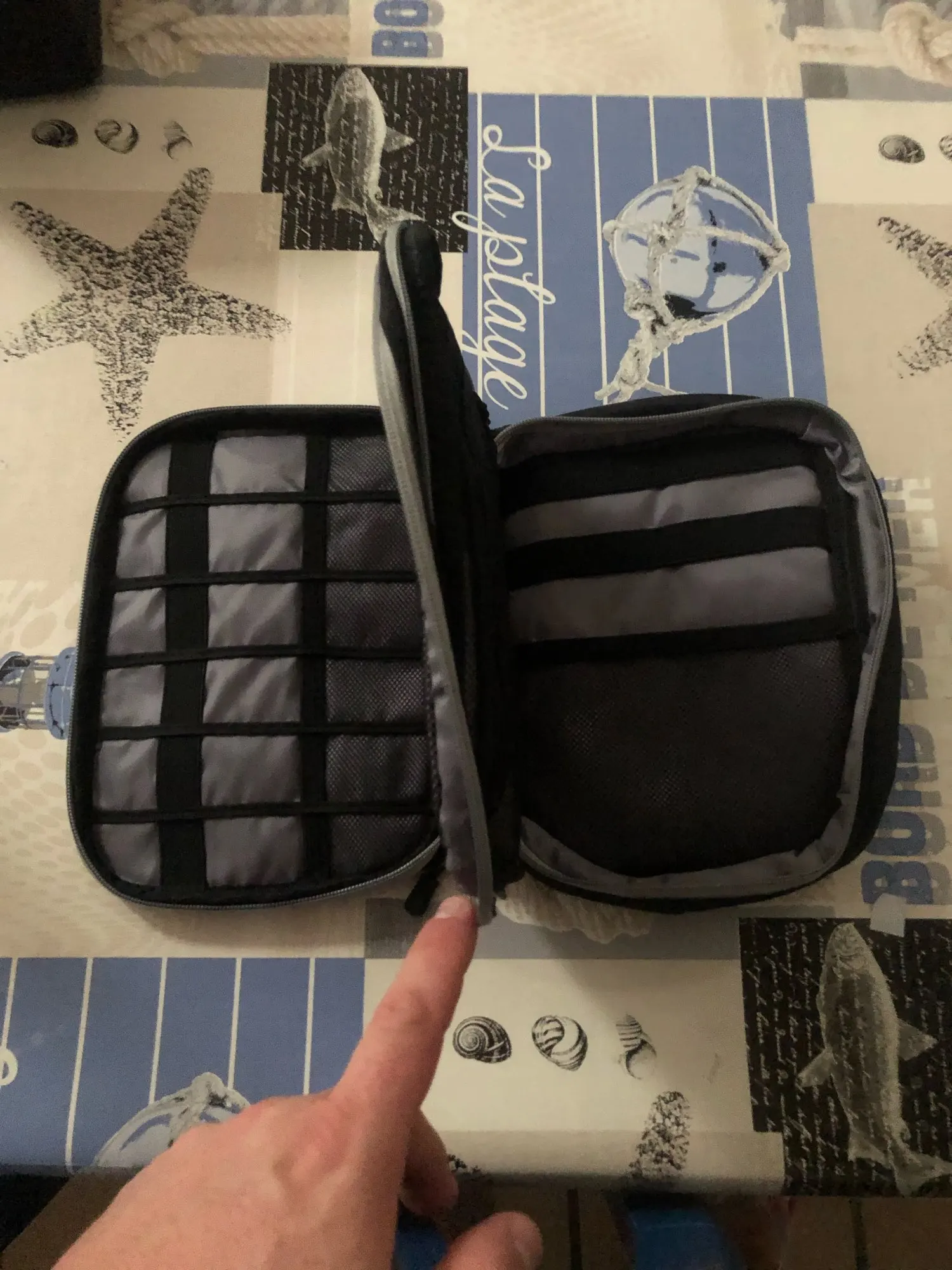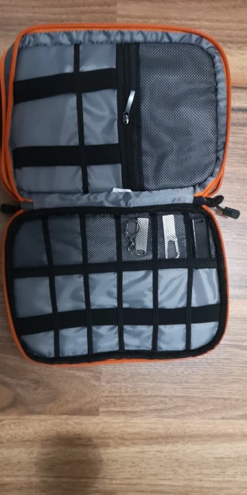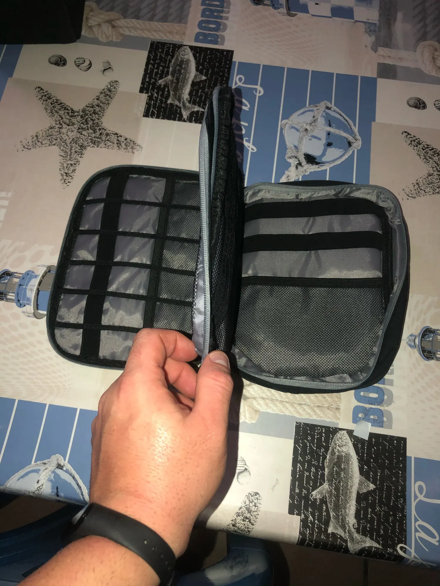 Чехол в соответствии с описанием. Он имеет карманы с обеих сторон и хорошее внутреннее пространство, хотя, если немного ограничено. Он функциональный и подходит для достаточно кабелей и гаджетов