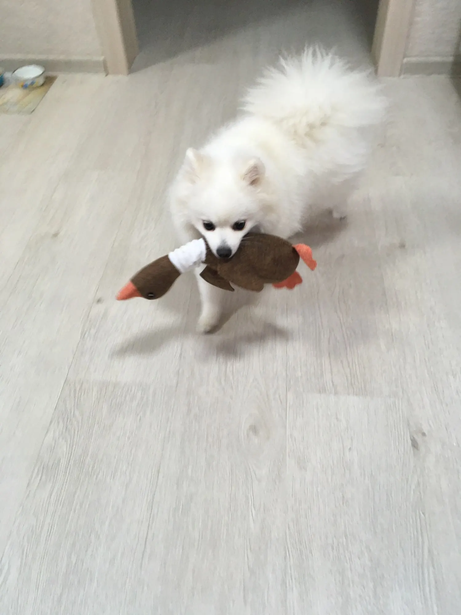 получила игрушку для собаки...писчалок хватило на пару часов.Он просто прокусил острым клыком.В игрушке нет наполнителя и от этого она тощая...Моей собаке 1,4 ...он расправился сразу с ней.. нет писчалок и игруха не нужна ему.