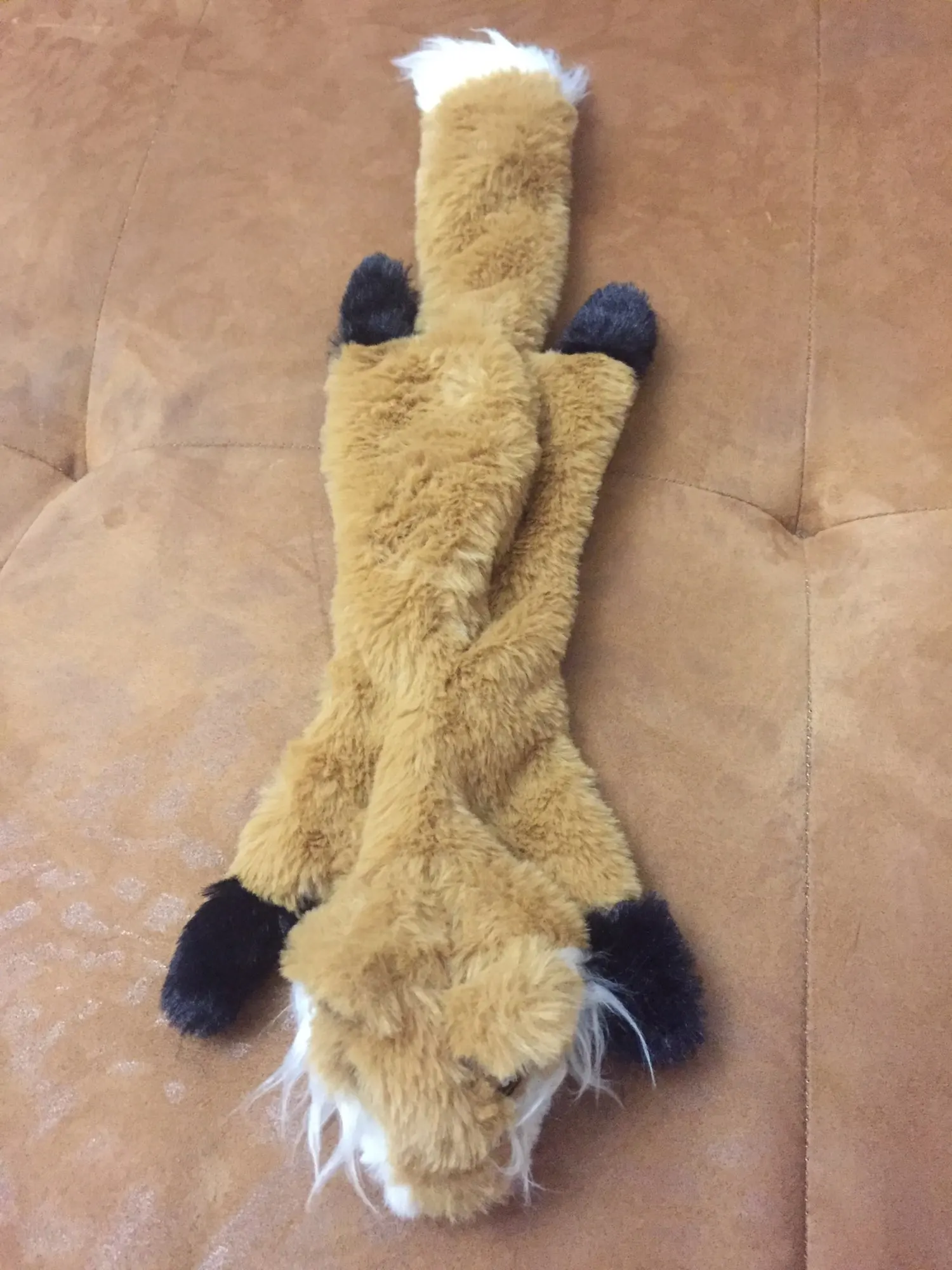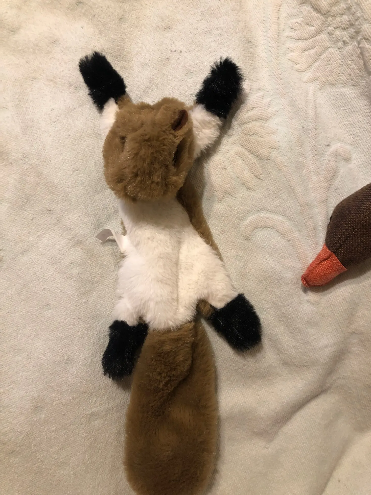 Хорошая игрушка для «трепания». И отлично, что нет синтепона.. и глаза не пластиковые. Это первое, что выгрызается..Висит в пасти, как настоящая дохлятина))) Собака довольна