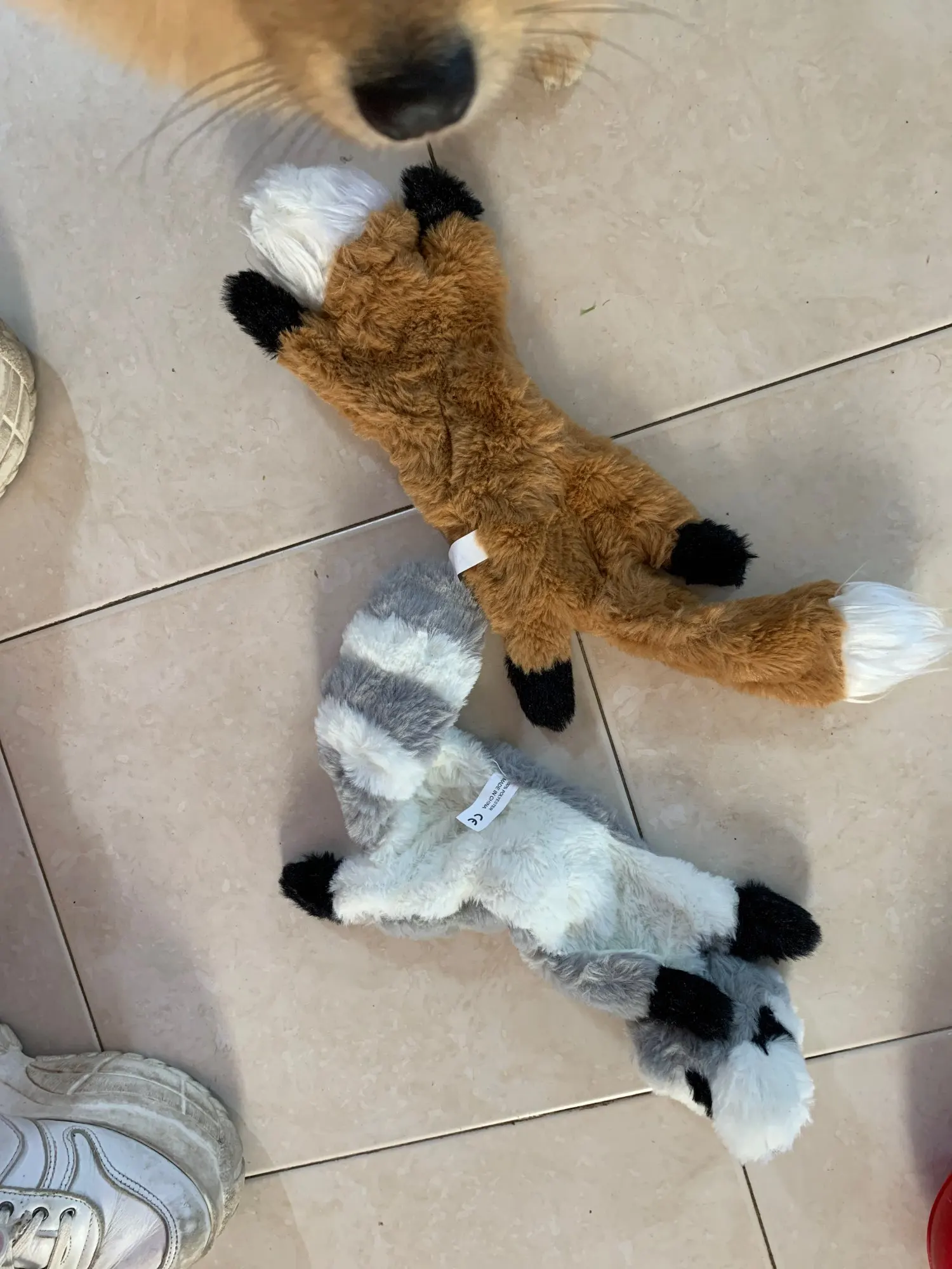 Собаки очень рады новым игрушка. 2 пищалки в голове и хвосте. Как издерут, то буду брать ещё