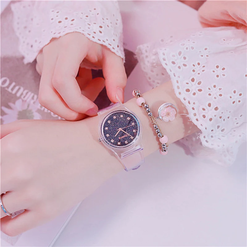 Часы женские, прозрачные, силиконовые, кварцевые, 2019
