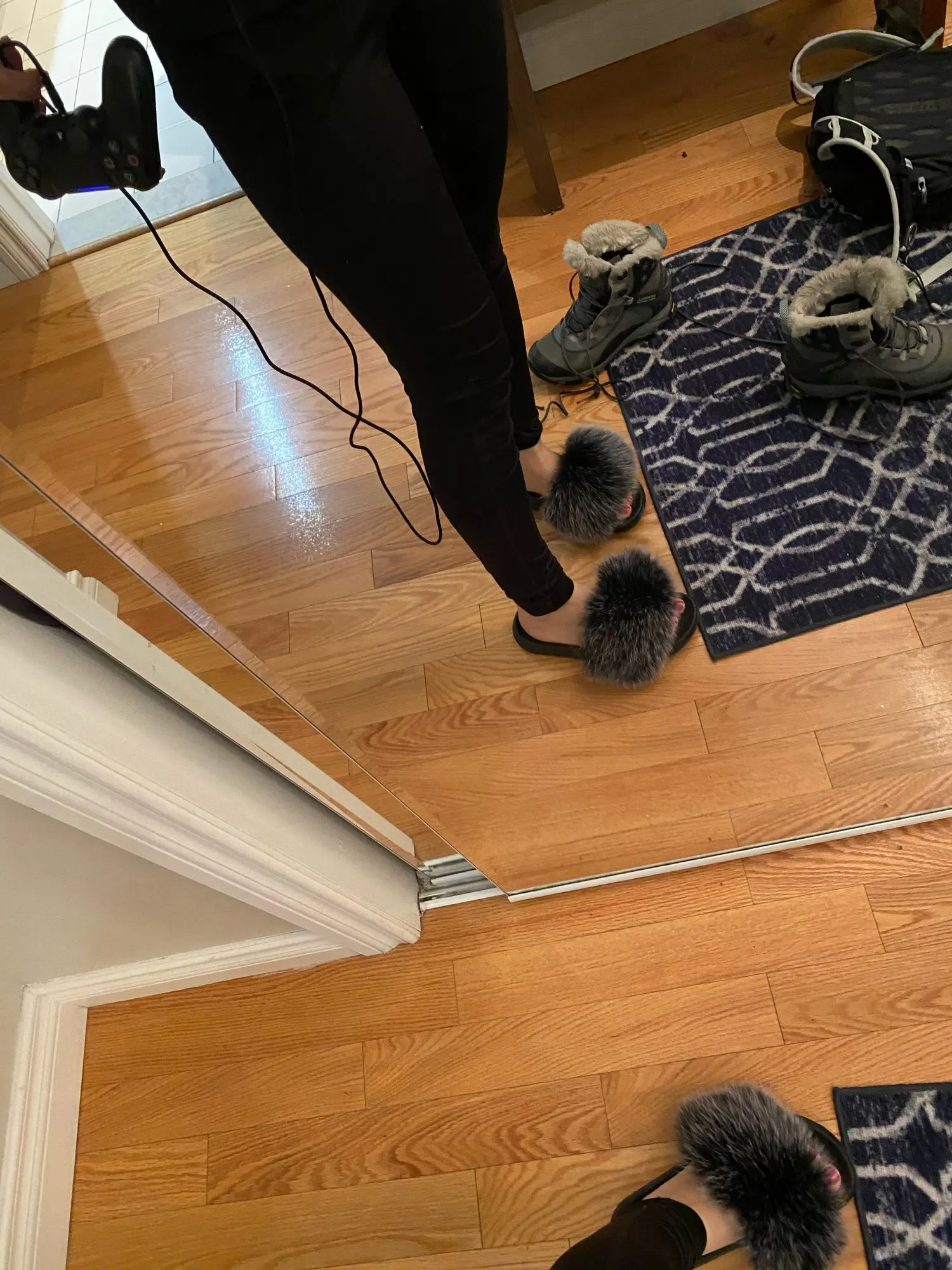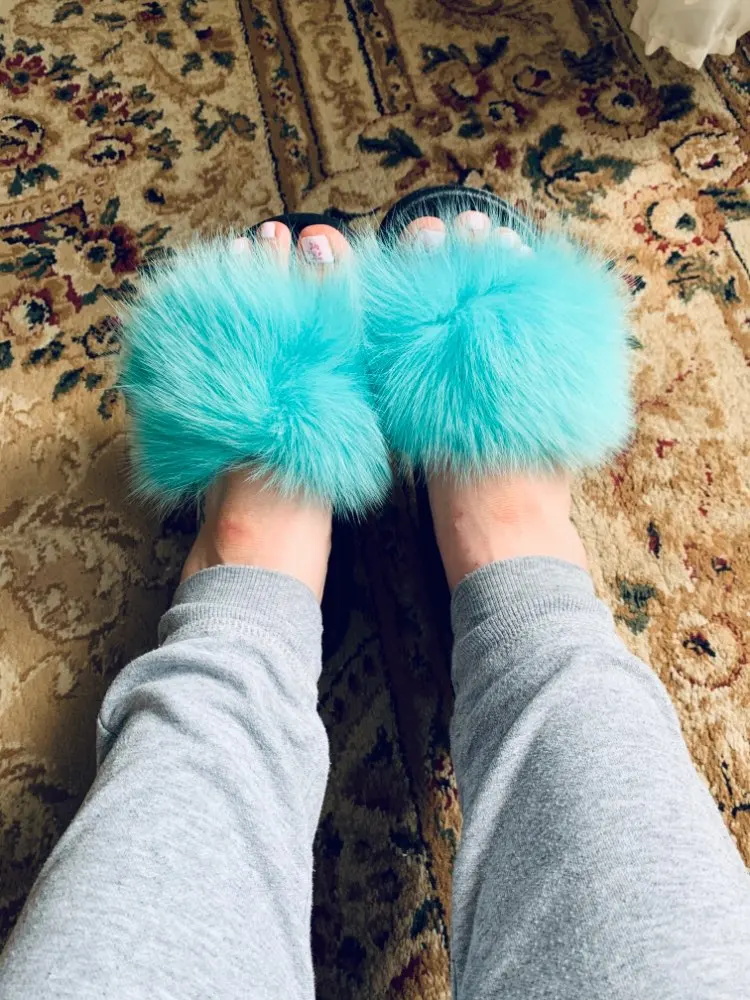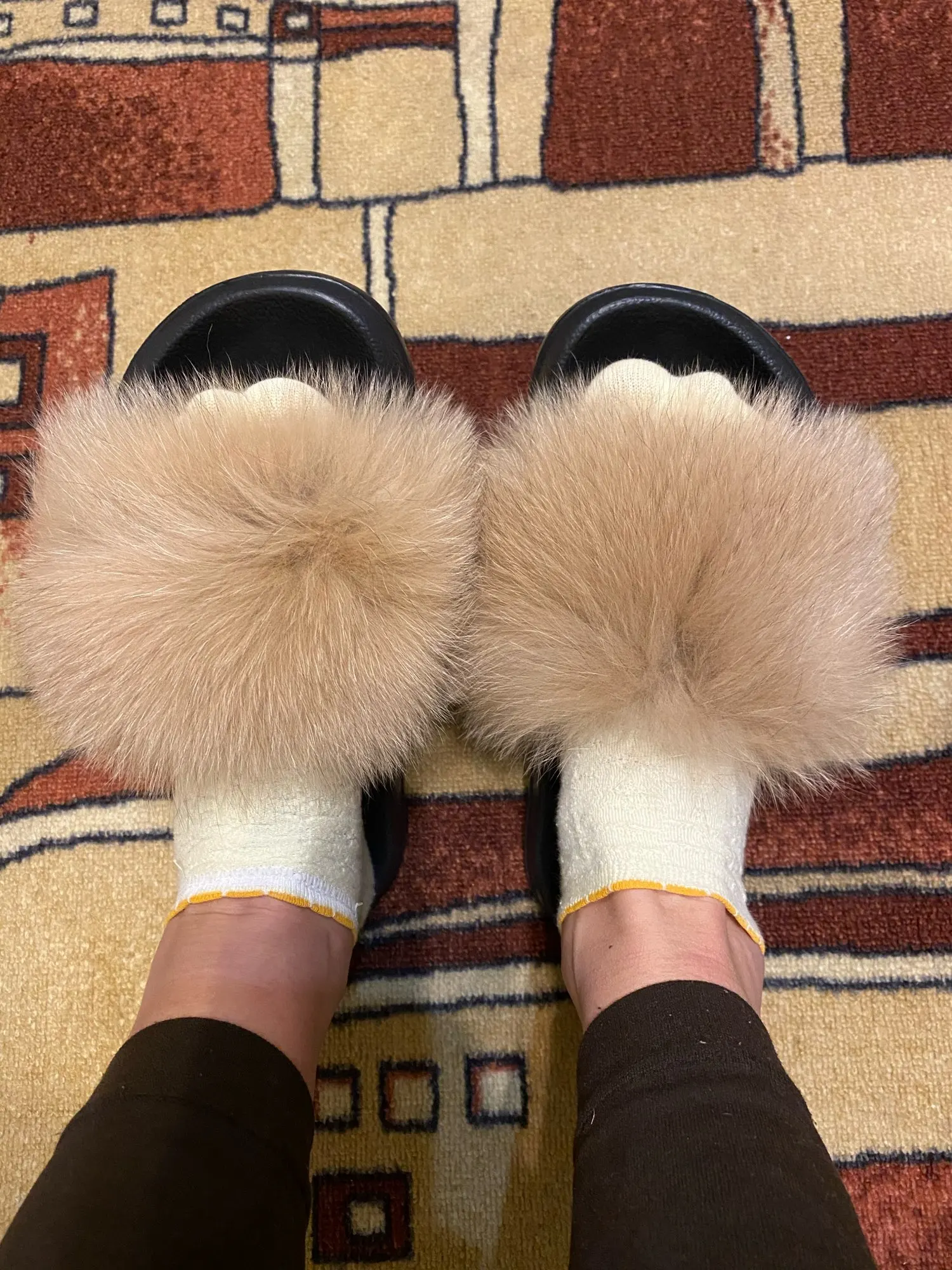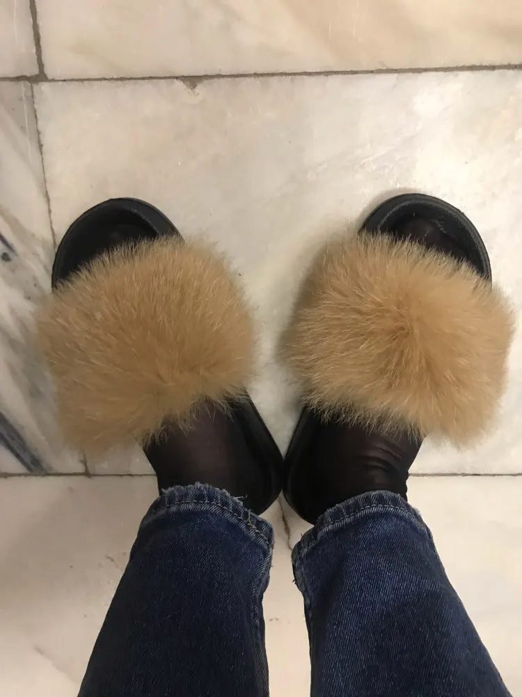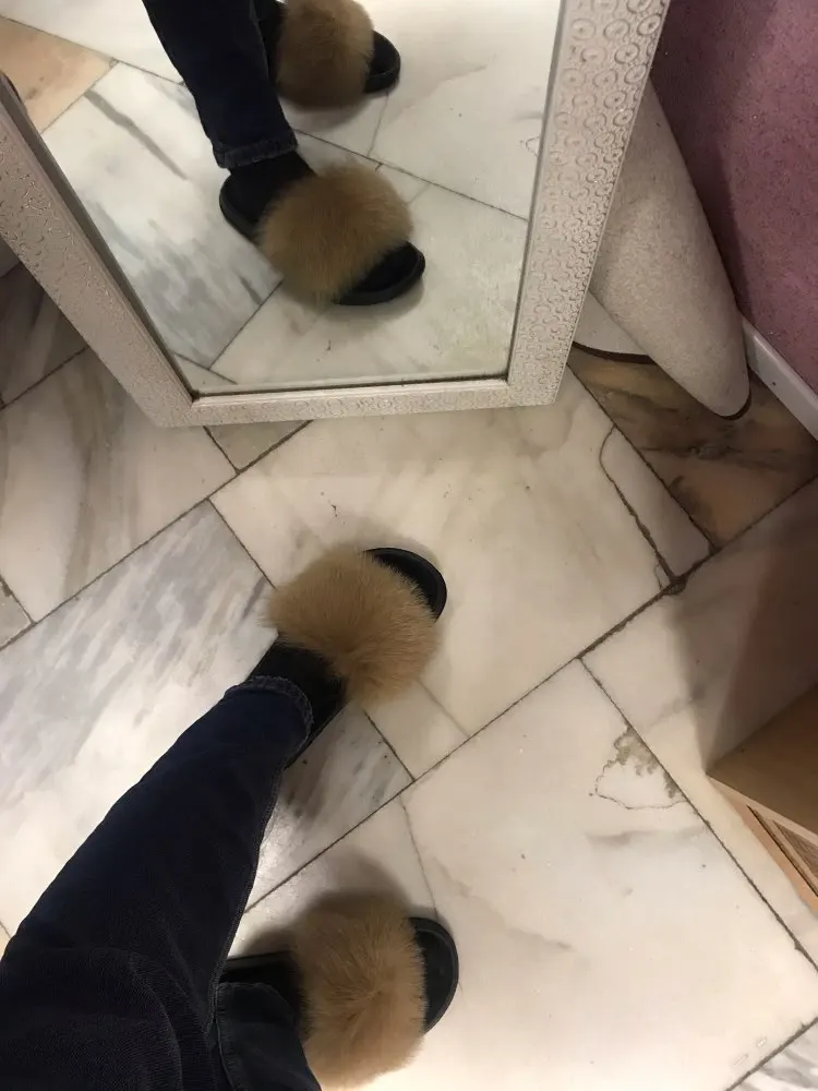 Красивый мех! Я думаю, что Размер большой, но они удобные.