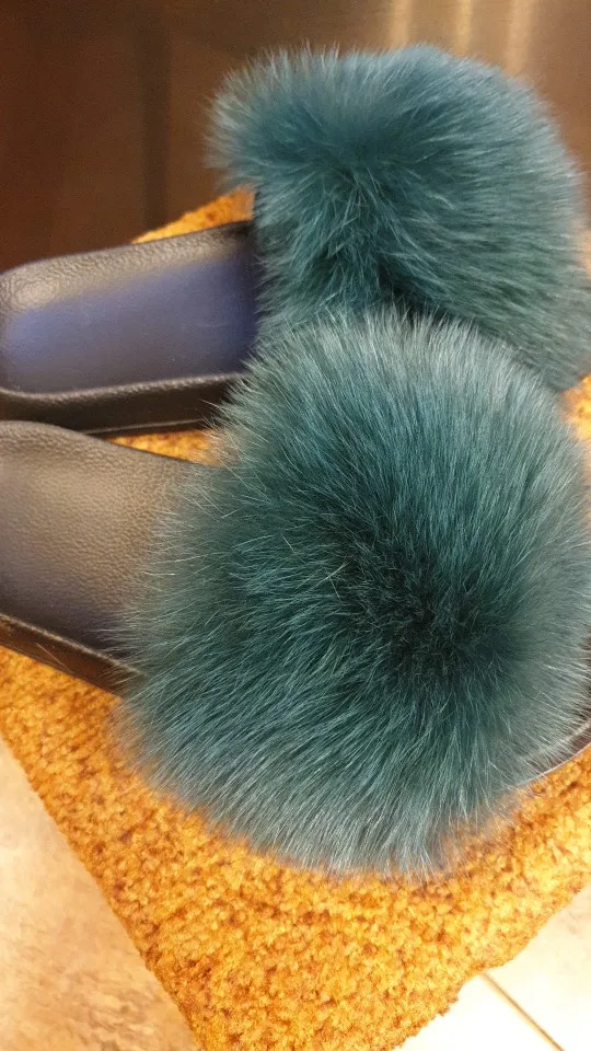 Женские меховые сандалии, повседневные пушистые шлепанцы на плоской подошве, Нескользящие, натуральный Лисий мех, сланцы, большие размеры, летняя обувь