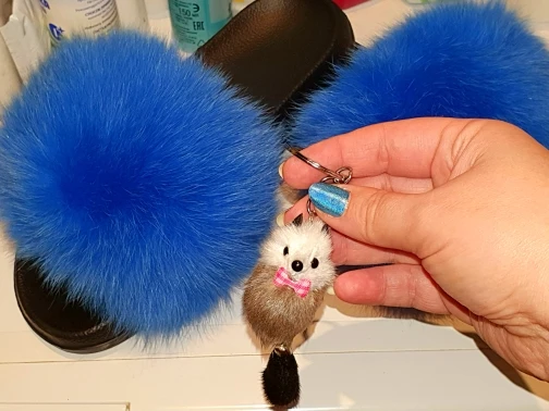 Тапули просто шедевр. Качество идеальное. В подарок продавец кладет брелочек. Мех на них это песец.