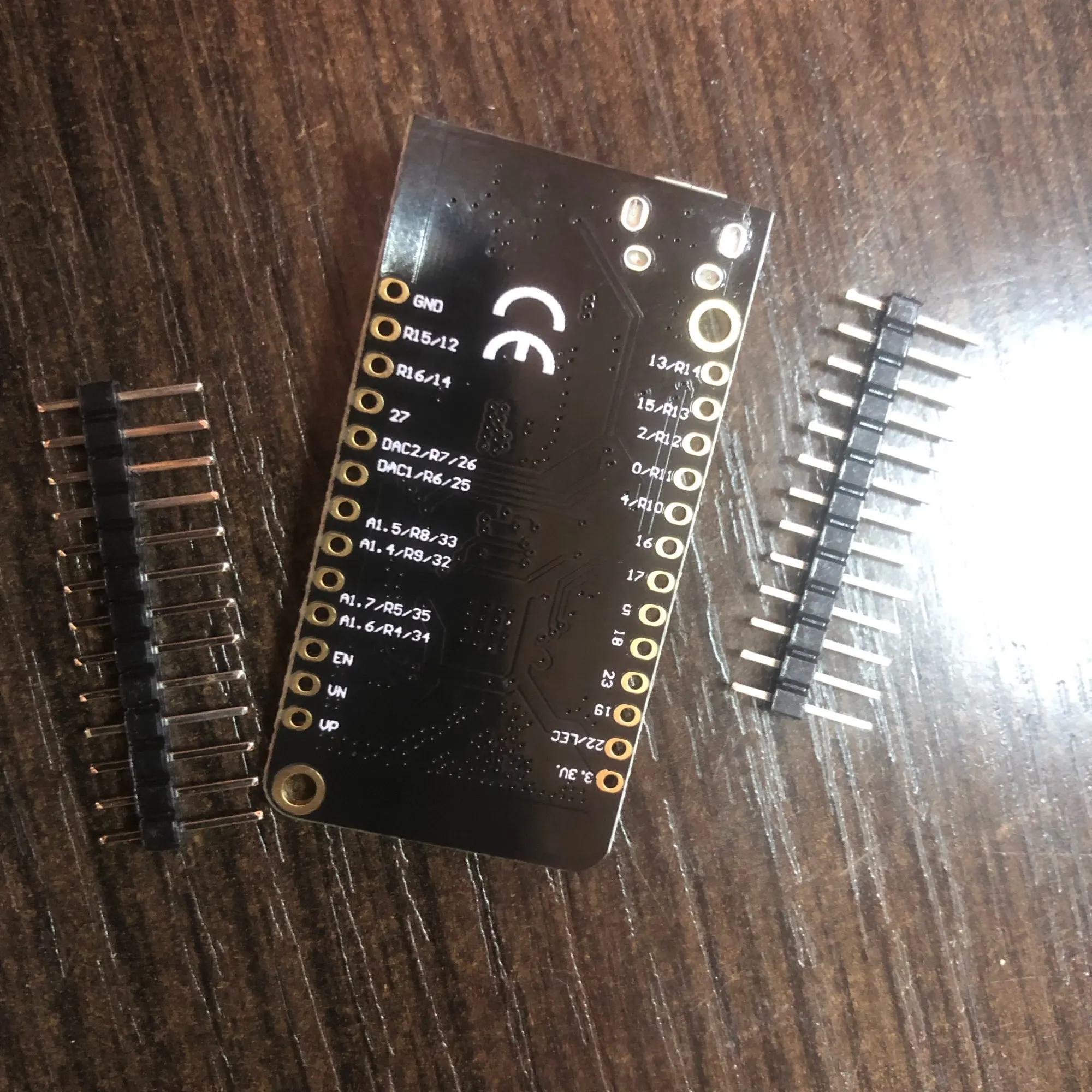Всё как на фото: нет контактов rx, tx, reset, vbat, vbus. Подключать питание к разъему для аккумулятора. Светодиод подключен к 22. Отличная цена, качество, доставка и упаковка.