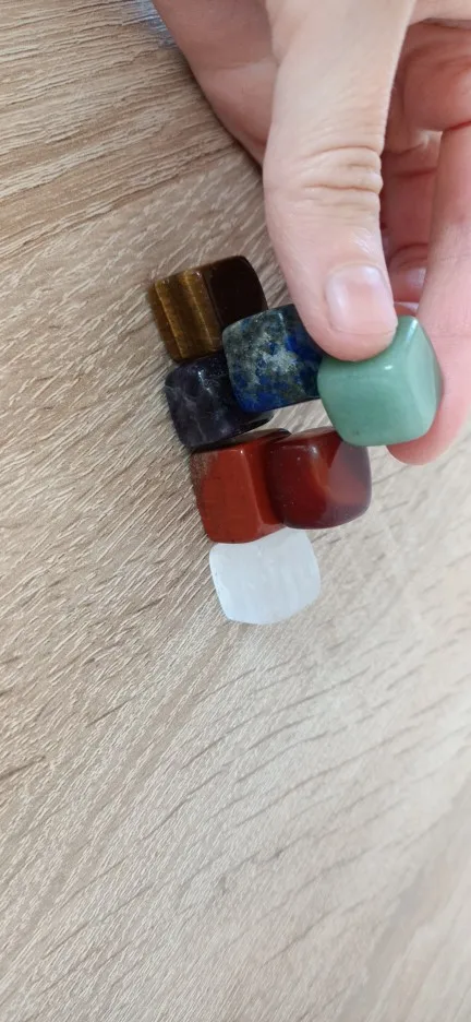 Квадратная форма из натурального камня для 7 Чакр: красная яшма, сердолик, тигровый глаз, авентурин, лазурит, аметист и кварцевый гиалин. Вес, около 70 гр. Бесплатные покупки довольны, рекомендую!