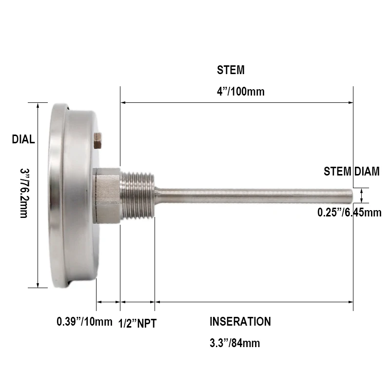Термометр с циферблатом Homebrew-зонд 3 "Face x 4"