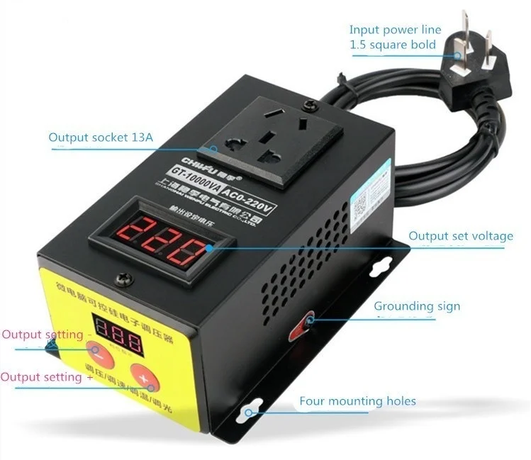 Тиристор высокой мощности 10000, регулирующий термостат Вт, ЕС, регулятор скорости вращения вентилятора, AC220V