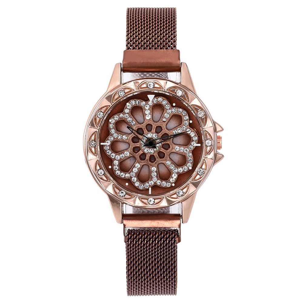 Часы женские кварцевые, вращающиеся на 360 градусов, с сетчатым магнитом, звездным небом
